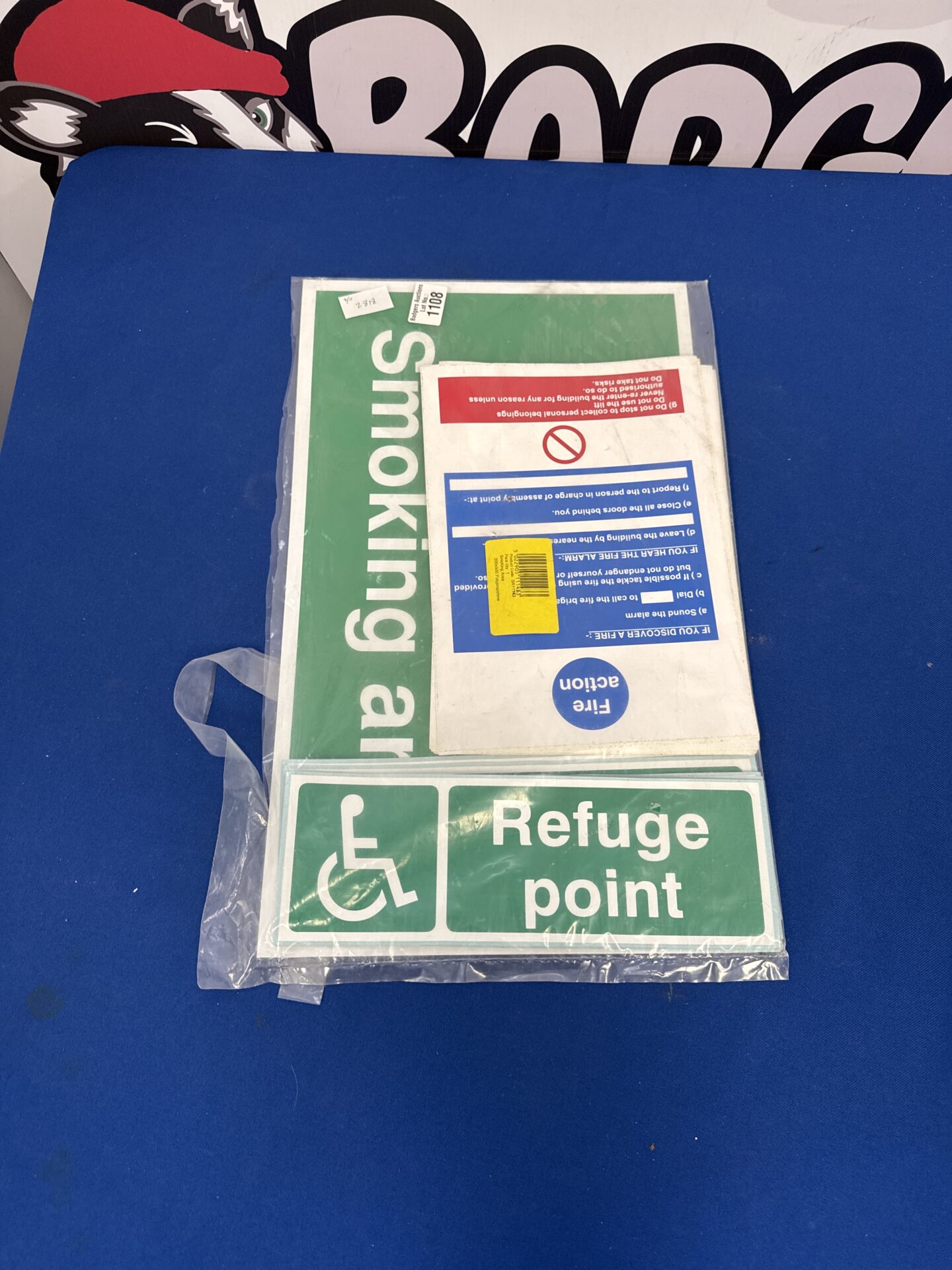 This lot features a collection of assorted health & safety signage, ideal for workplace or public spaces. Signs cover fire safety, first aid, and general warnings, constructed from durable plastic. A useful addition for businesses or a unique collectible for enthusiasts.