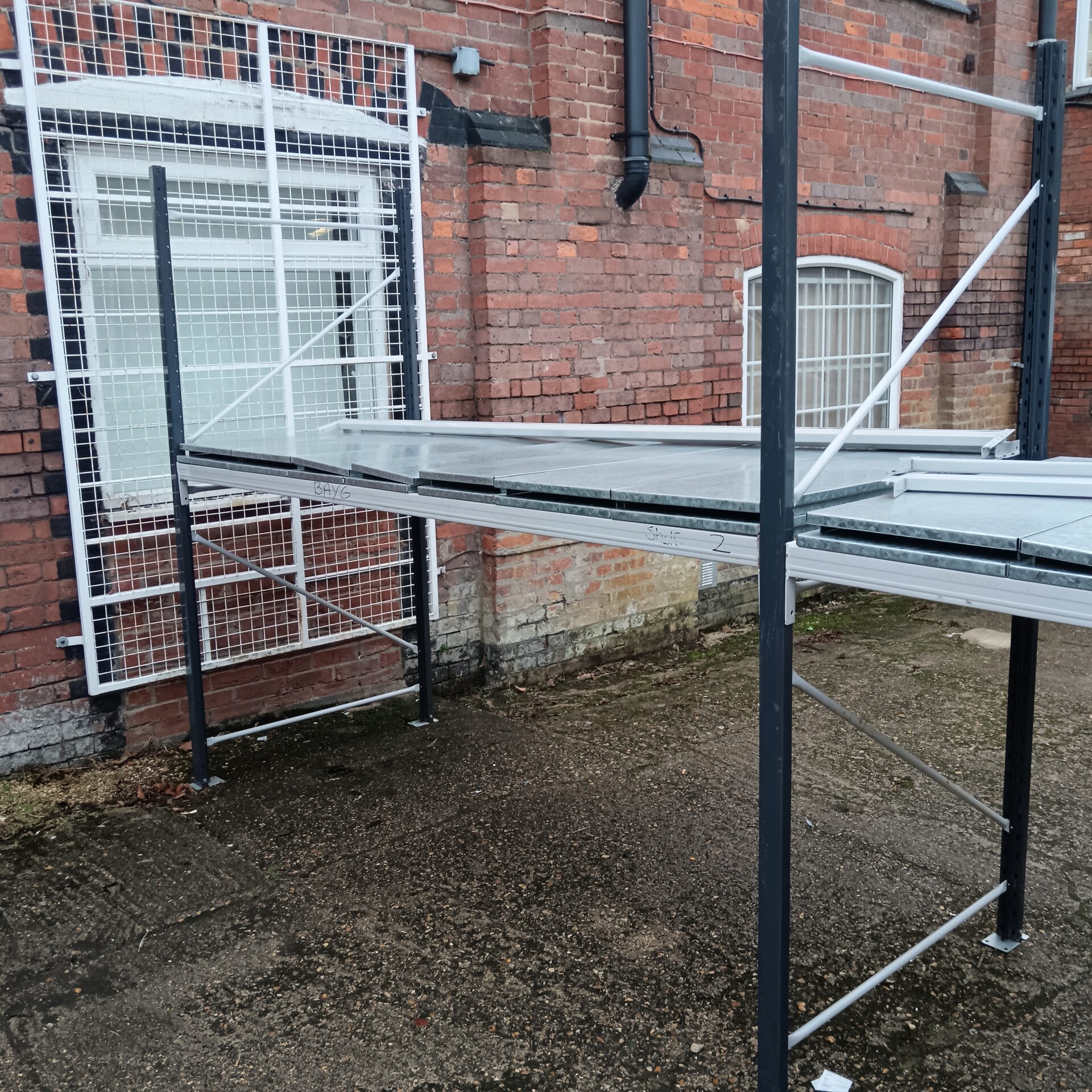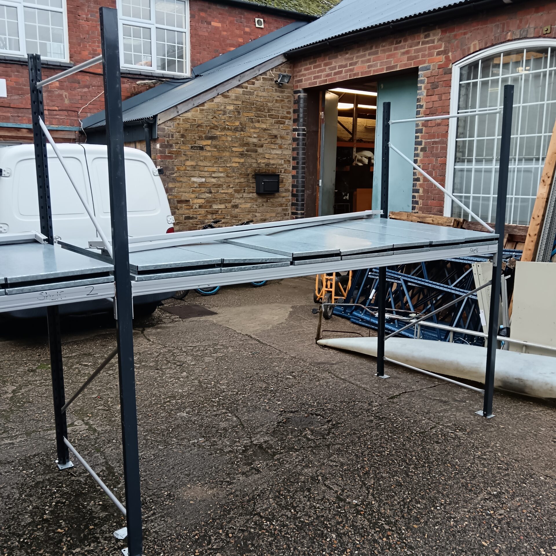 The racking appears to have been previously used, exhibiting signs of wear consistent with its likely industrial application. While not pristine, the unit remains structurally sound and potentially functional. This type of racking is sought after by those needing robust storage solutions, as well as collectors of industrial ephemera and vintage workshop equipment.