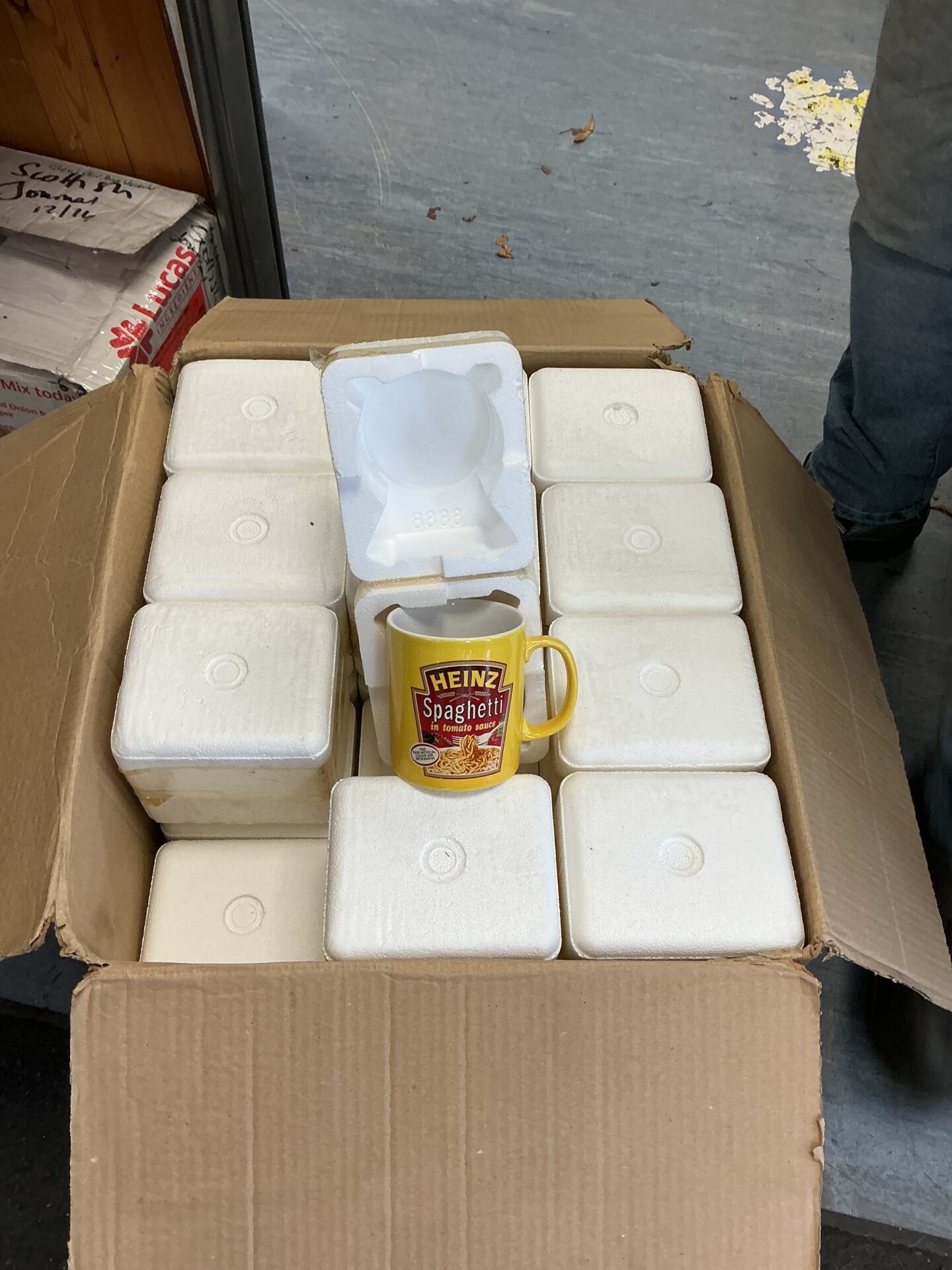 This lot consists of multiple Heinz Spaghetti branded mugs. These mugs feature imagery related to the popular canned spaghetti product, offering a nostalgic and playful touch to any kitchen or collection. The mugs are designed as promotional items, likely distributed as part of a marketing campaign, and showcase the iconic Heinz branding.
