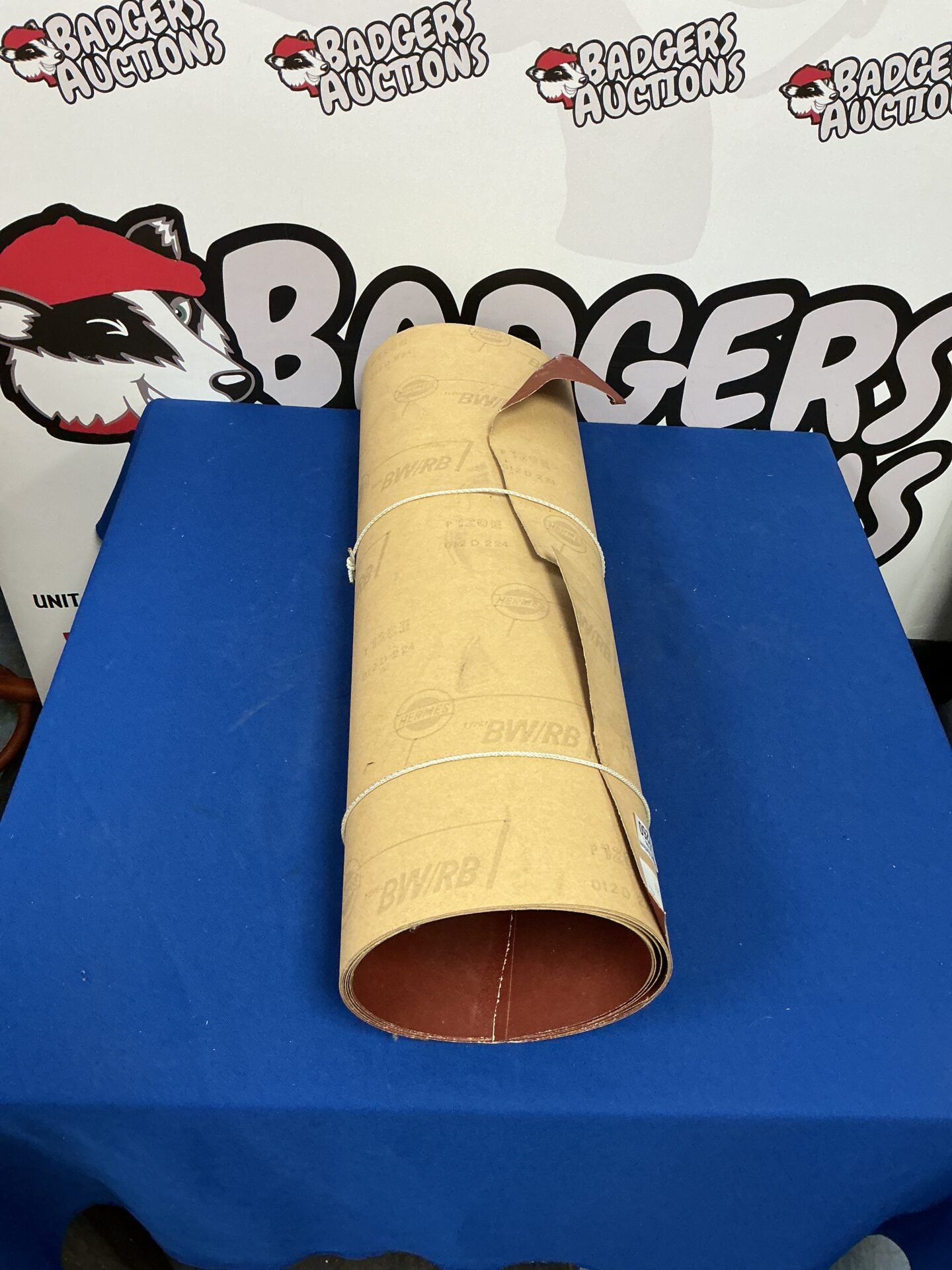 This is a roll of Hermes BW/RB glasspaper, a type of abrasive paper used for smoothing and polishing surfaces. The roll appears to be a classic design, likely intended for use in workshops, metalworking, or woodworking applications. The BW/RB designation likely refers to the grit or grade of the paper, indicating its intended use for specific materials or levels of abrasion.