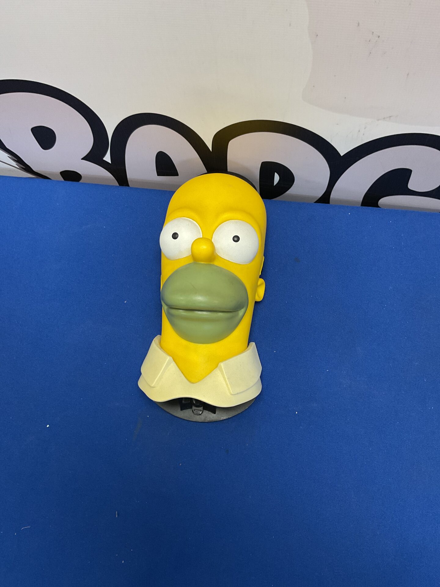 This bottle opener shows signs of previous use and wear, consistent with its age. It presents a unique opportunity for Simpsons enthusiasts and collectors of pop culture memorabilia. Its retro aesthetic and character likeness make it a desirable piece for display or practical use, adding a touch of fun to any space.