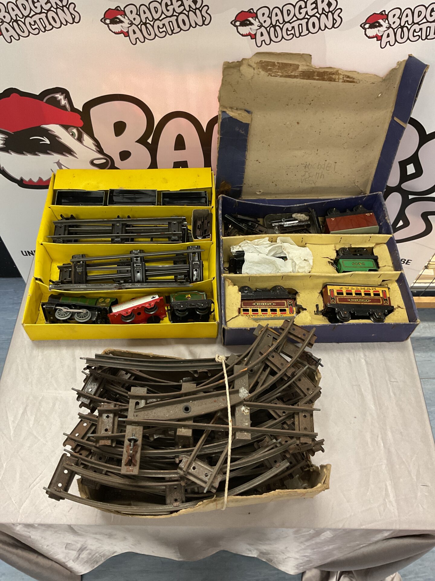 This lot comprises a Hornby train set, complete with track sections and various accessories. The set appears to be a classic example of a mid-century model railway, designed for hobbyists and collectors. The inclusion of multiple track pieces suggests the potential for creating a complex and engaging layout, while the accessories add to the realism and play value of the set.