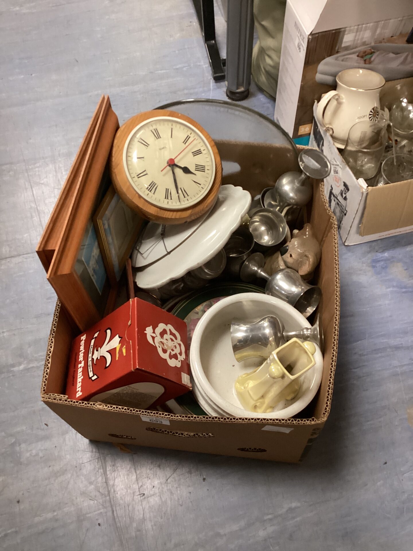 693 Box Of House Clearance Inc Pewter Tankards & Glassware