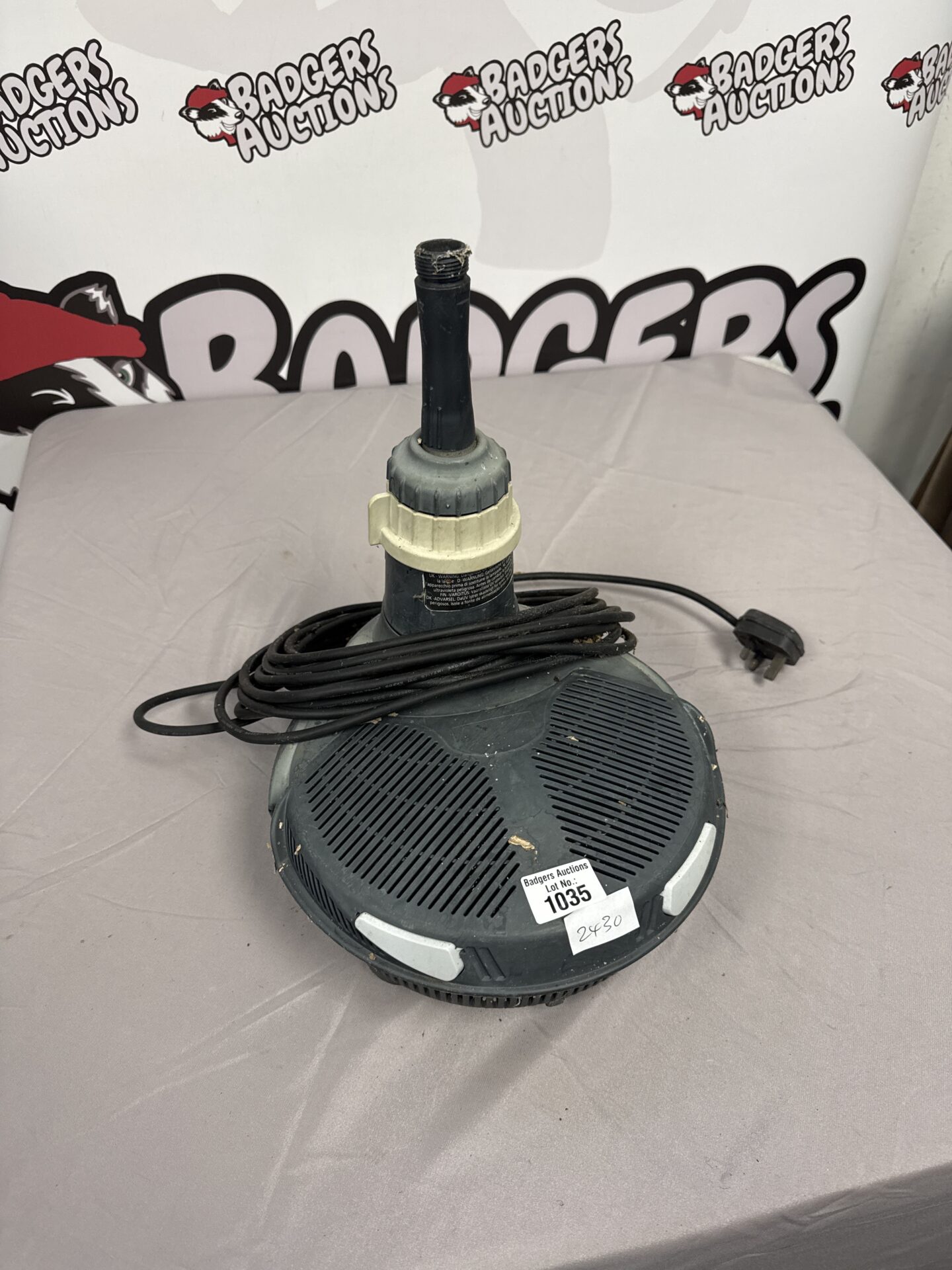 This Hozelock Cyprio pond pump is presented for auction in used condition. The pump shows signs of wear consistent with use, and its operational status is unknown. It may be of interest to collectors of garden equipment, pond enthusiasts, or those seeking parts for repair or restoration.