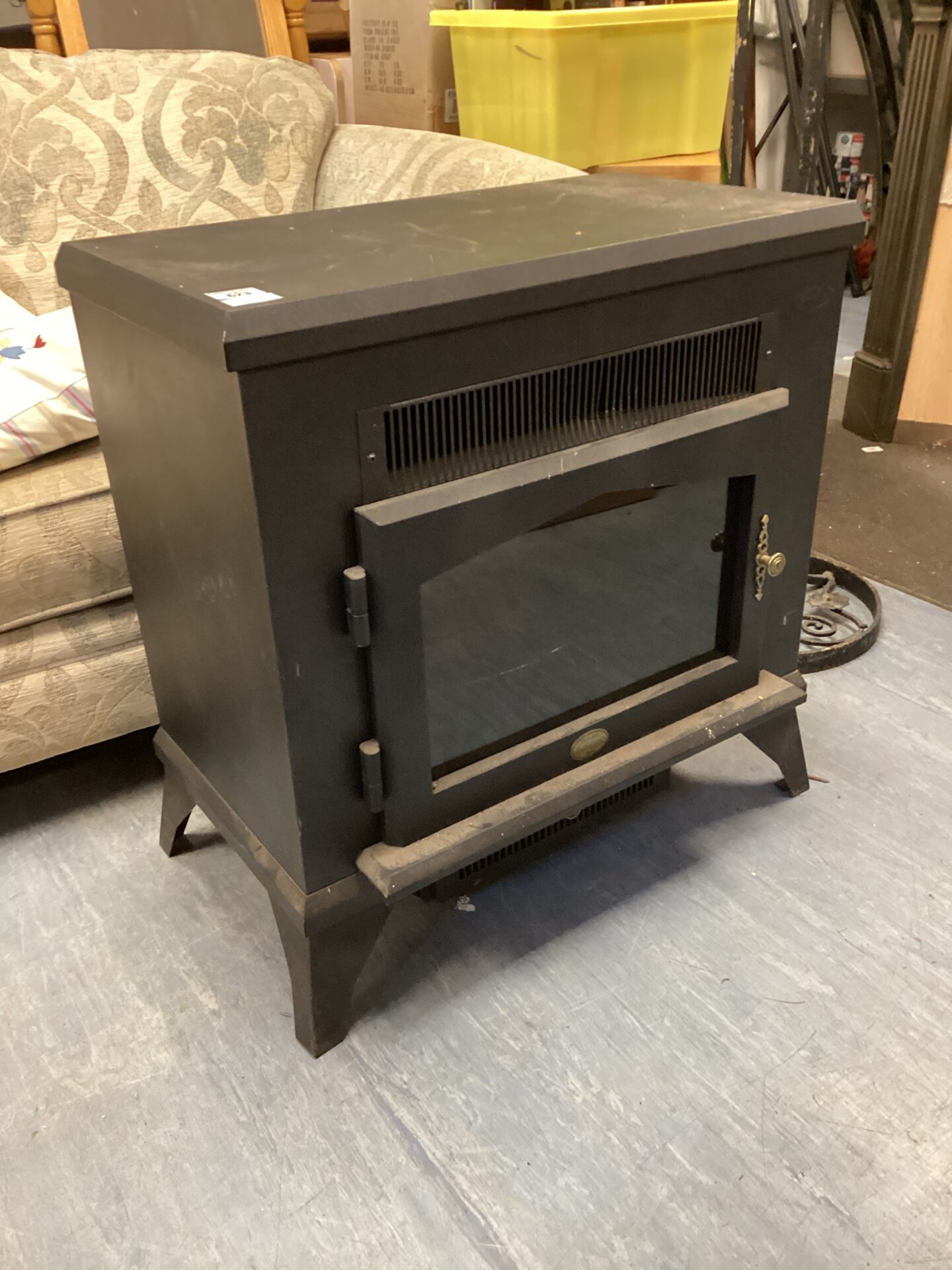 This is a Hydro Flame Chelmsford fireplace, designed to mimic the look of a traditional cast iron stove. It features a black finish and a classic stove design, intended to create a cozy focal point in a room without the need for actual combustion. The unit is designed to house an electric firebox (not included) and offers a decorative alternative to wood-burning stoves.