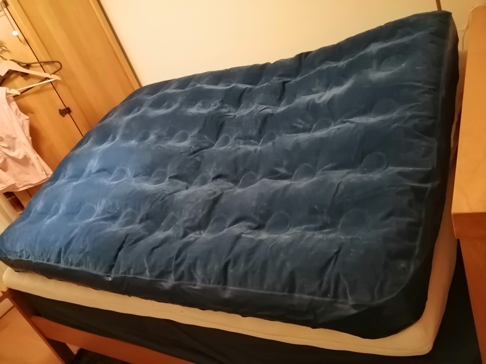 The air bed is presented as-found, with visible creases and folds from storage. Its originality appears intact, and it may appeal to collectors of vintage camping equipment or those seeking a functional item for occasional use. Please examine the images carefully to assess its condition before purchase.