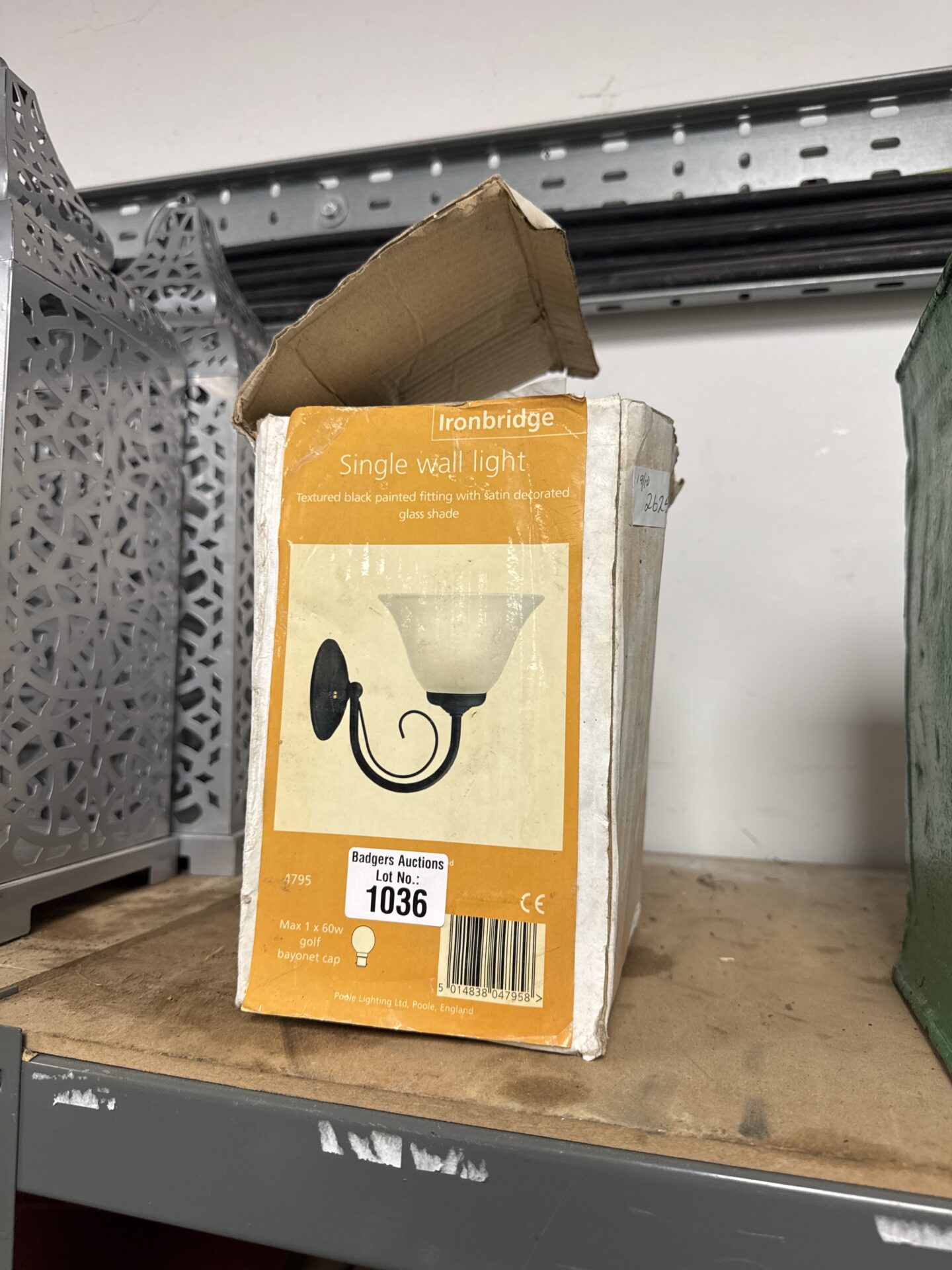 This Iron bridge single wall light, model 1795, features a textured black finish and a beautiful satin decorated glass shade. Perfect for adding a touch of vintage charm to any room, this wall sconce is ideal for hallways, bedrooms, or bathrooms. A stylish and functional addition to any home, this light is ready for installation and will enhance your interior décor.