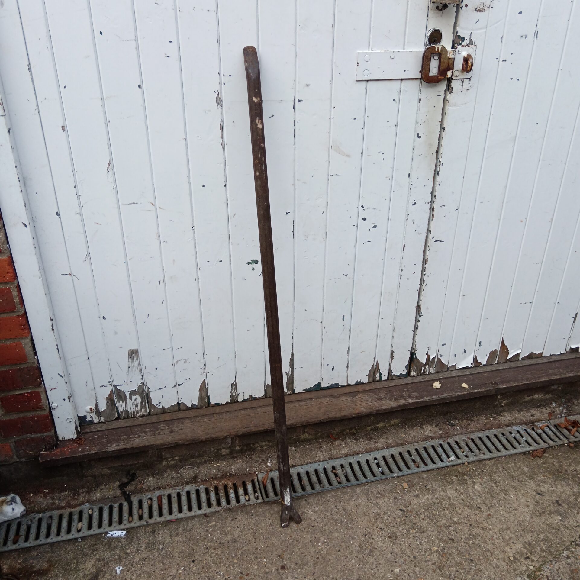 The crowbar displays signs of considerable use, with surface corrosion and wear consistent with age and handling. Despite this, the iron remains structurally sound, and the tool retains its original form. This crowbar would appeal to collectors of vintage tools, those involved in restoration projects, or individuals seeking a durable and authentic piece of equipment.