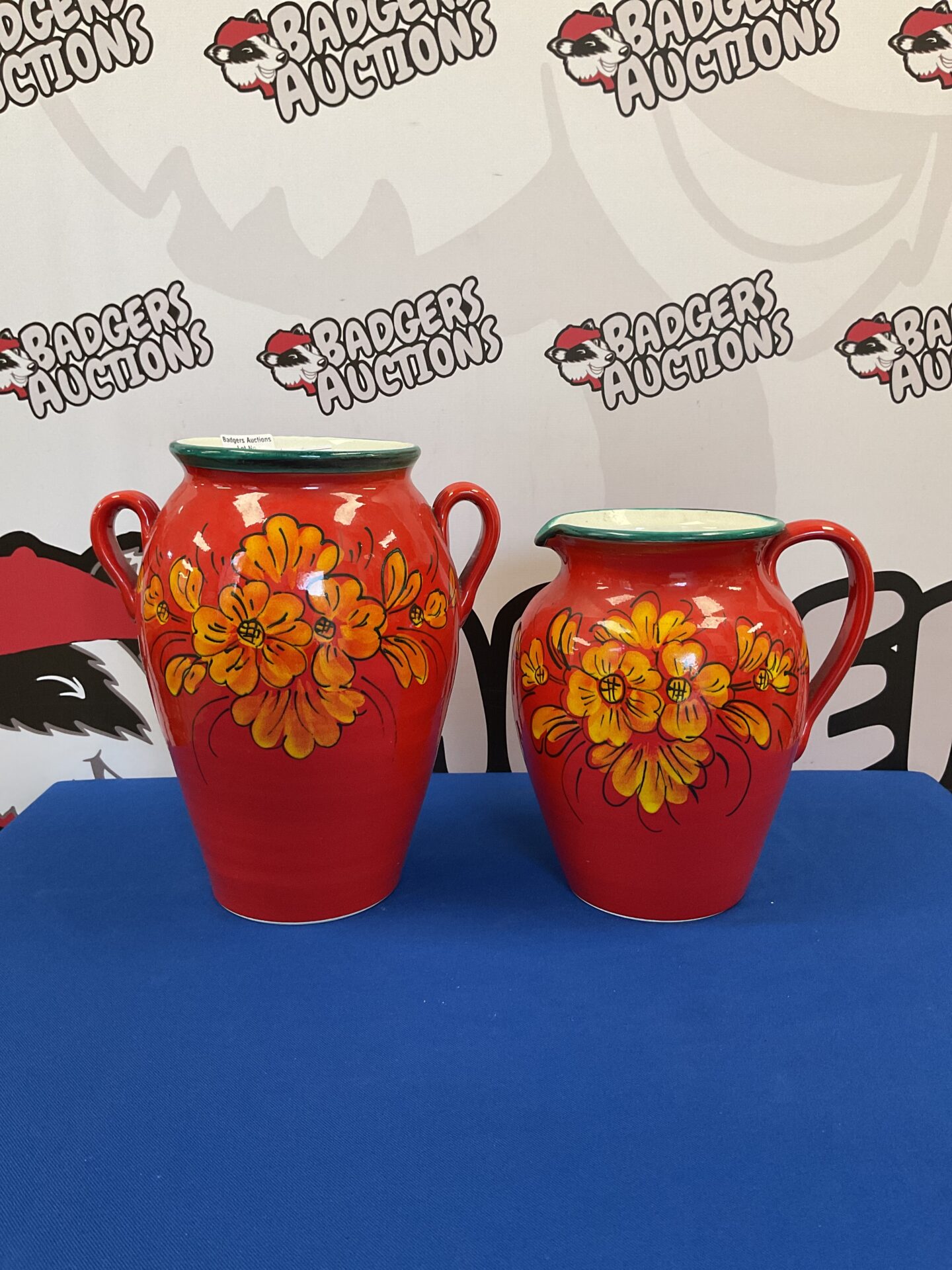 025 Italian Floral Jug And Vase – Red Hand-painted Pottery