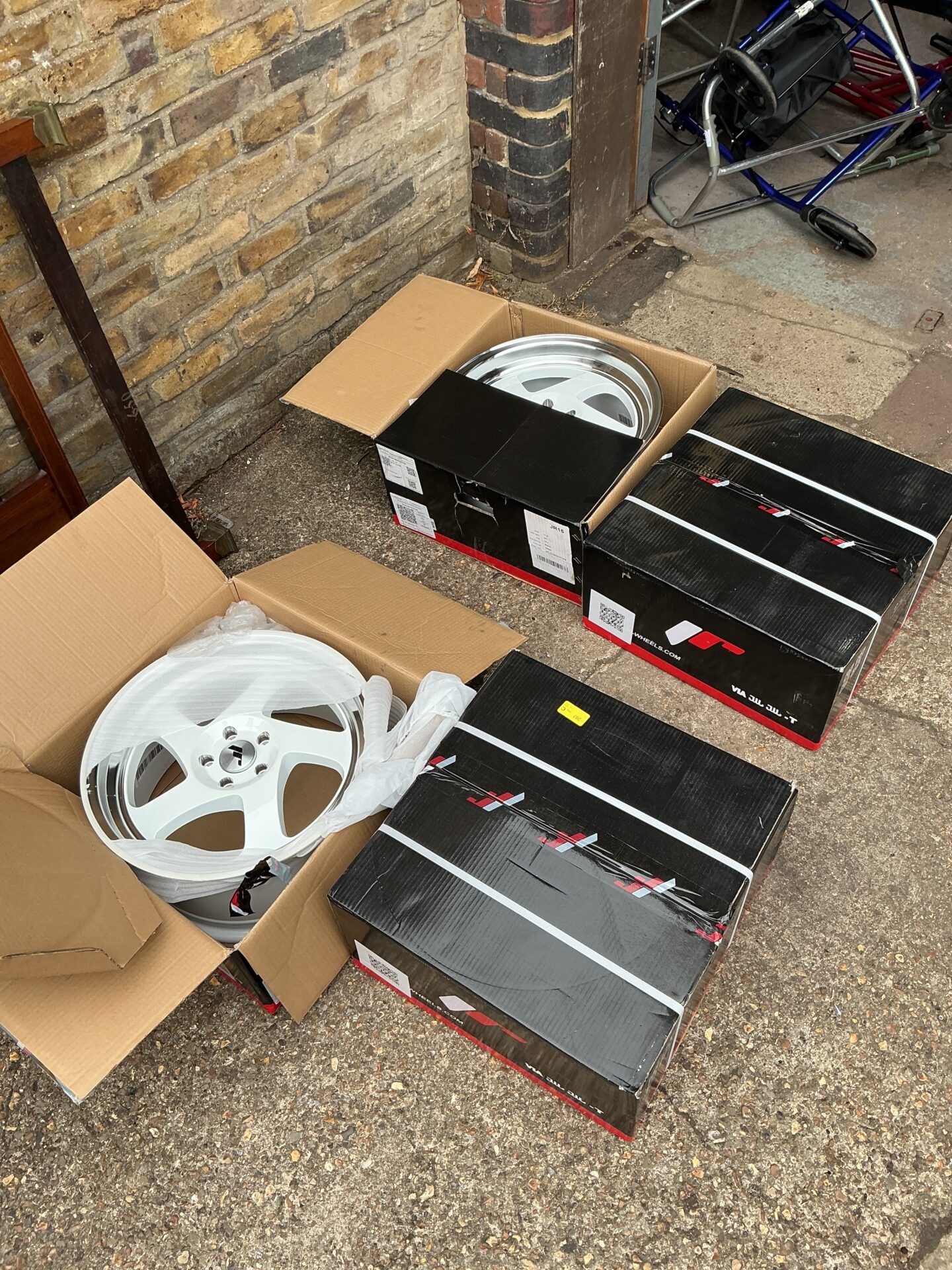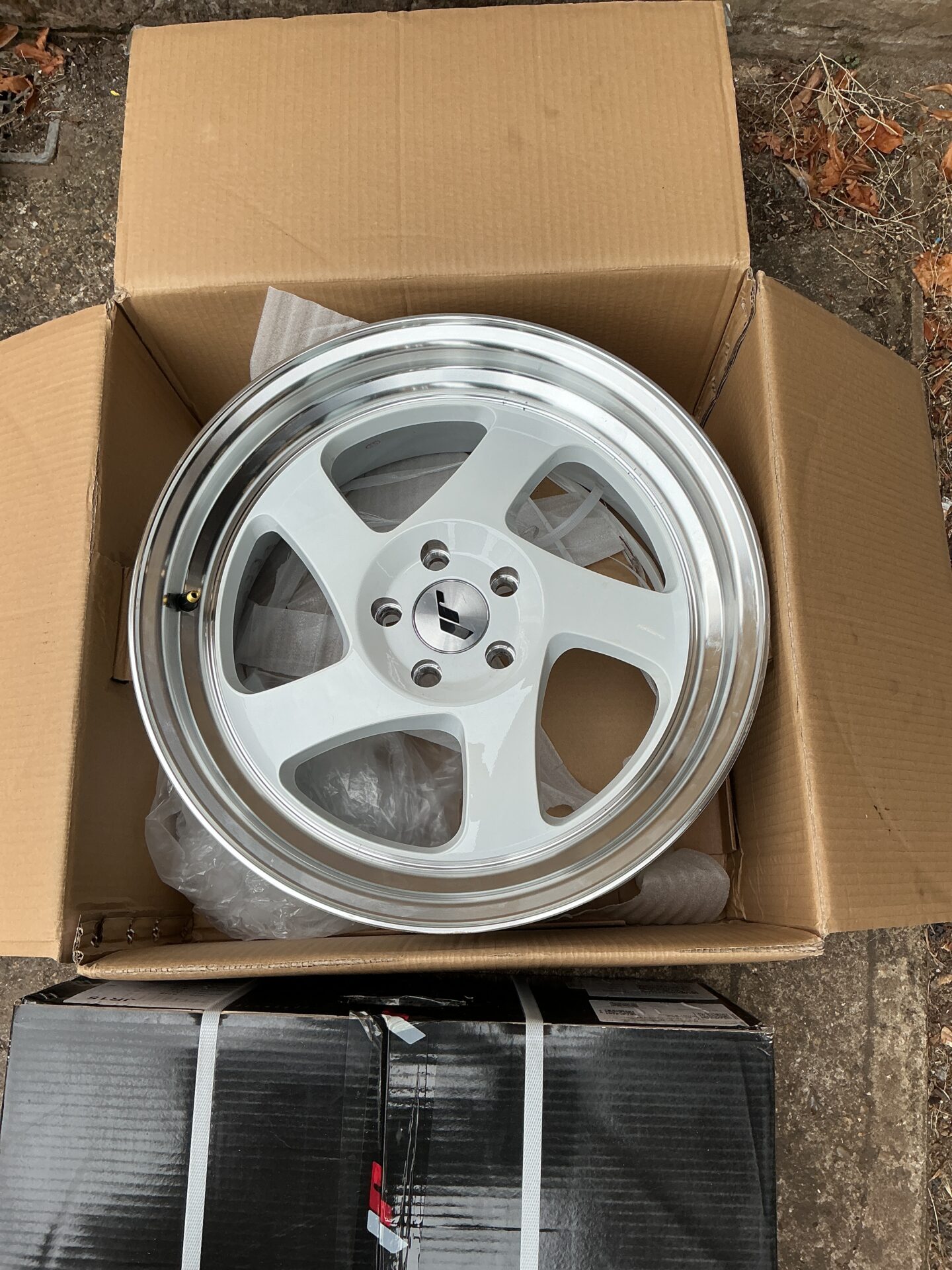 This set is brand new, with one wheel having had a tyre fitted previously, but never driven on. Selling due to not clearing brake calipers on a Subaru. These wheels are a sought-after design and are ideal for enthusiasts looking to enhance the appearance and performance of their vehicle. They represent a great opportunity to acquire a quality set of wheels at a competitive price.