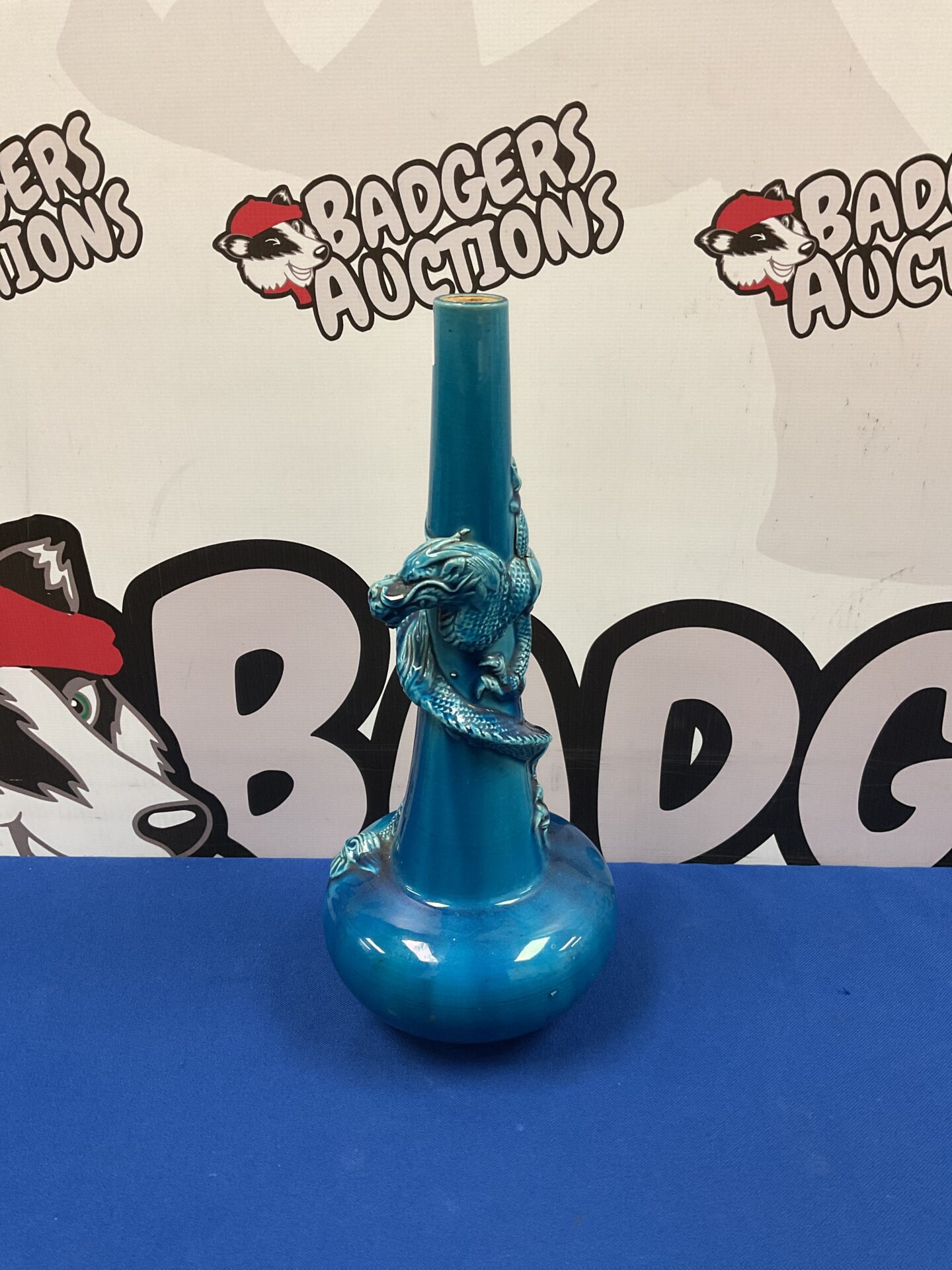 033 Turquoise Japanese Porcelain Awaji Glazed Baluster Vase