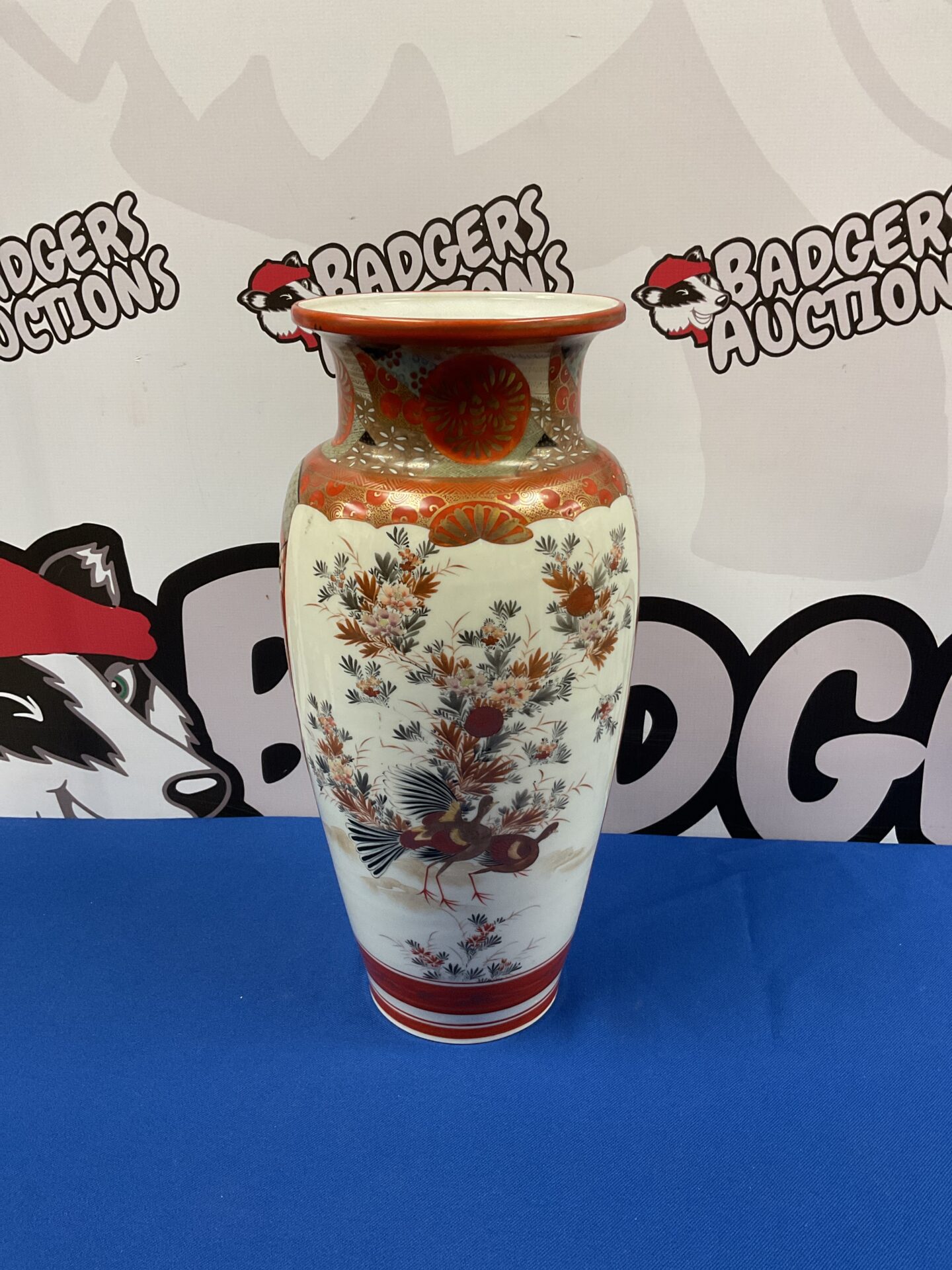 The vase appears to be in good condition, with expected wear consistent with its age. It presents well and would be a desirable addition to a collection of Japanese art or antique porcelain. The hand-painted details and the signature on the base add to its value and appeal for collectors interested in authentic pieces from the Meiji period.