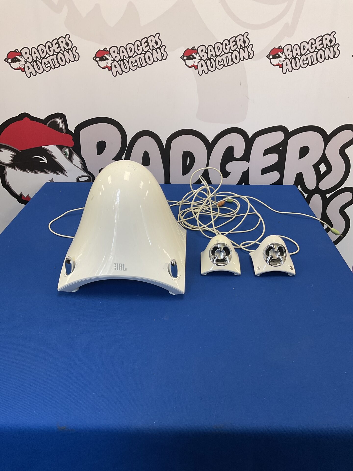 This is a JBL subwoofer, designed to enhance the low-frequency audio experience in a home entertainment system. The sleek white finish provides a modern aesthetic, and its compact size allows for flexible placement within a room. This subwoofer delivers powerful bass response, adding depth and impact to music and movies.
