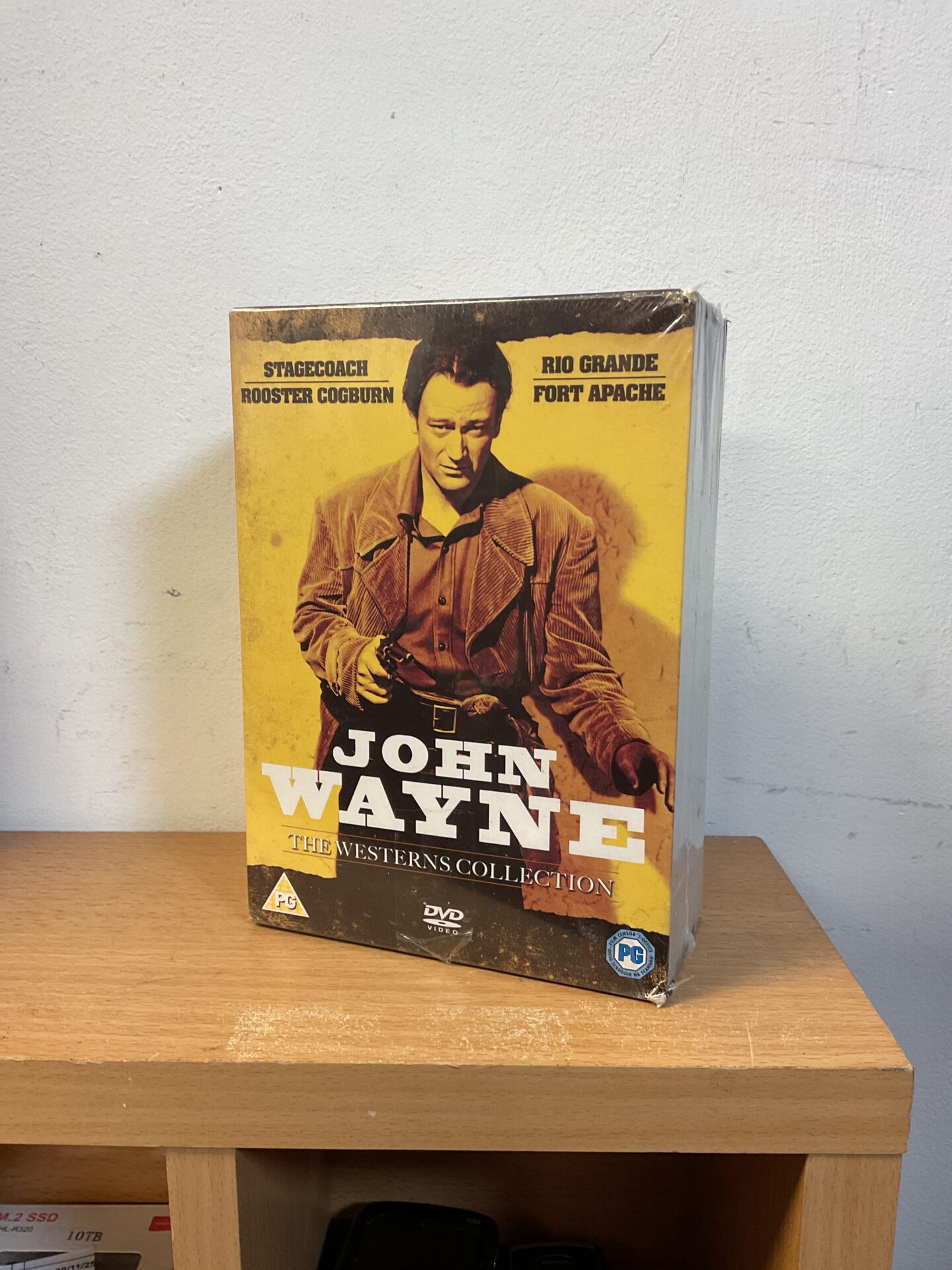 The condition of this DVD boxset appears consistent with age and storage. It may exhibit signs of wear, such as scuffs or minor damage to the packaging. This set would be of interest to collectors of classic Westerns, fans of John Wayne, or those looking to expand their film library with iconic movies.