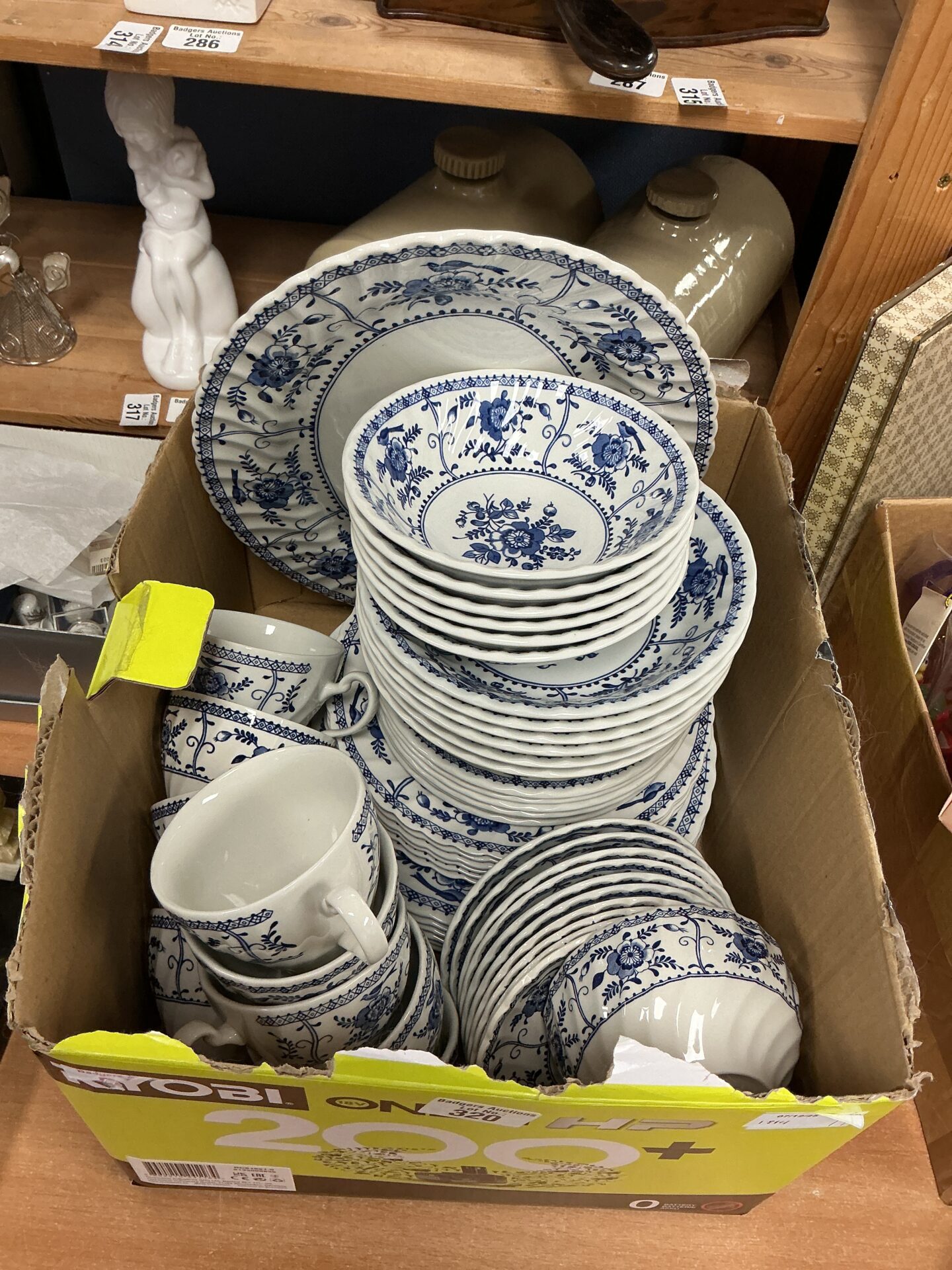 This extensive lot comprises a large quantity of Johnson Bros tableware, featuring a classic floral pattern. The pieces exhibit the quality craftsmanship associated with Staffordshire pottery, known for its durable construction and charming designs. This collection is ideal for both everyday use and display, adding a touch of vintage elegance to any dining experience.
