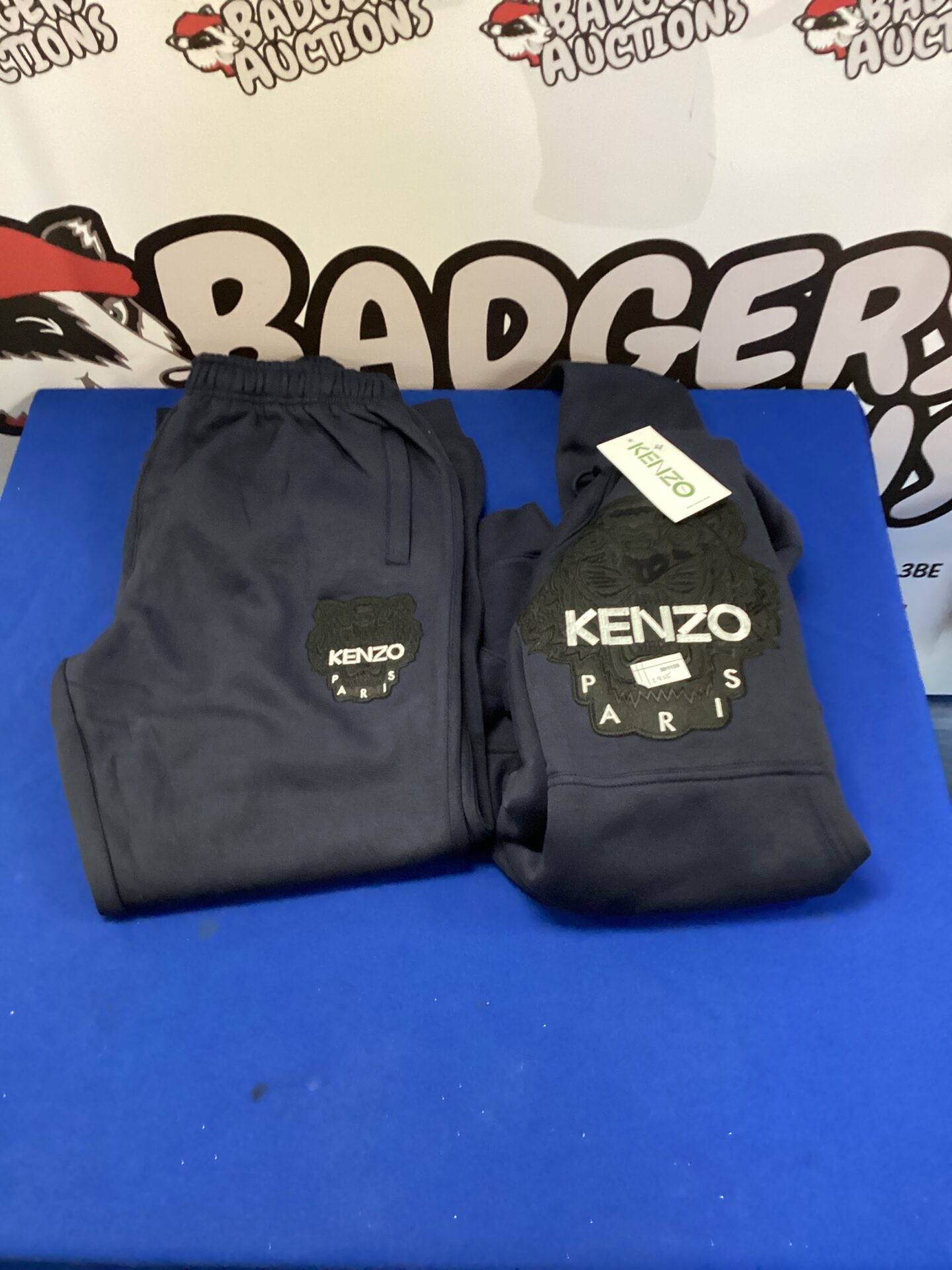 This Kenzo Paris tracksuit appears new with tags, suggesting it has not been worn. Its designer branding and sought-after style make it a desirable piece for collectors of high-end streetwear or fashion enthusiasts. The size XL offers a comfortable fit for a range of body types, adding to its appeal.