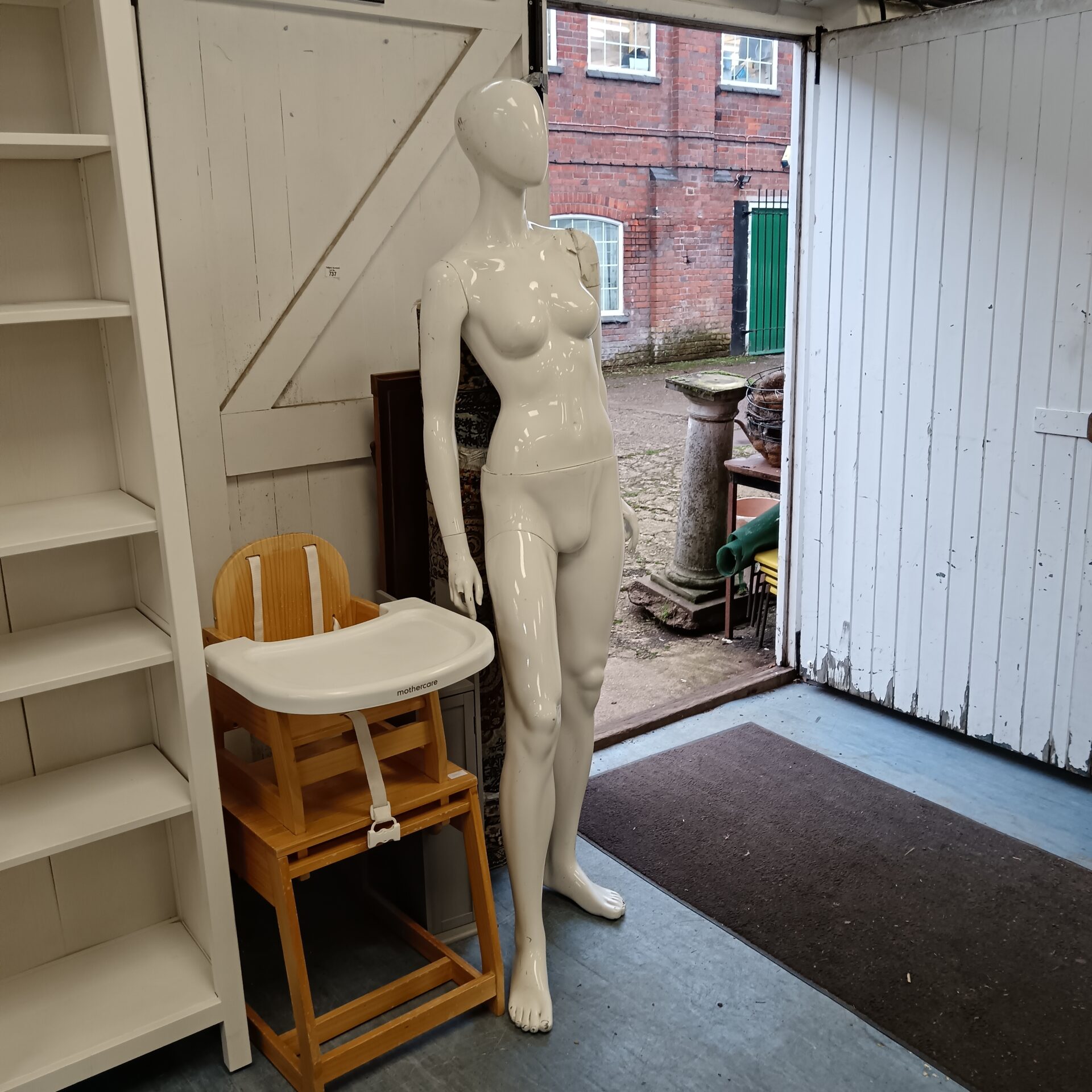 This is a full size lady mannequin, designed for retail display or artistic purposes. The mannequin is constructed with a durable body, intended to showcase clothing and accessories. Its neutral pose and classic form make it versatile for a variety of styling options.