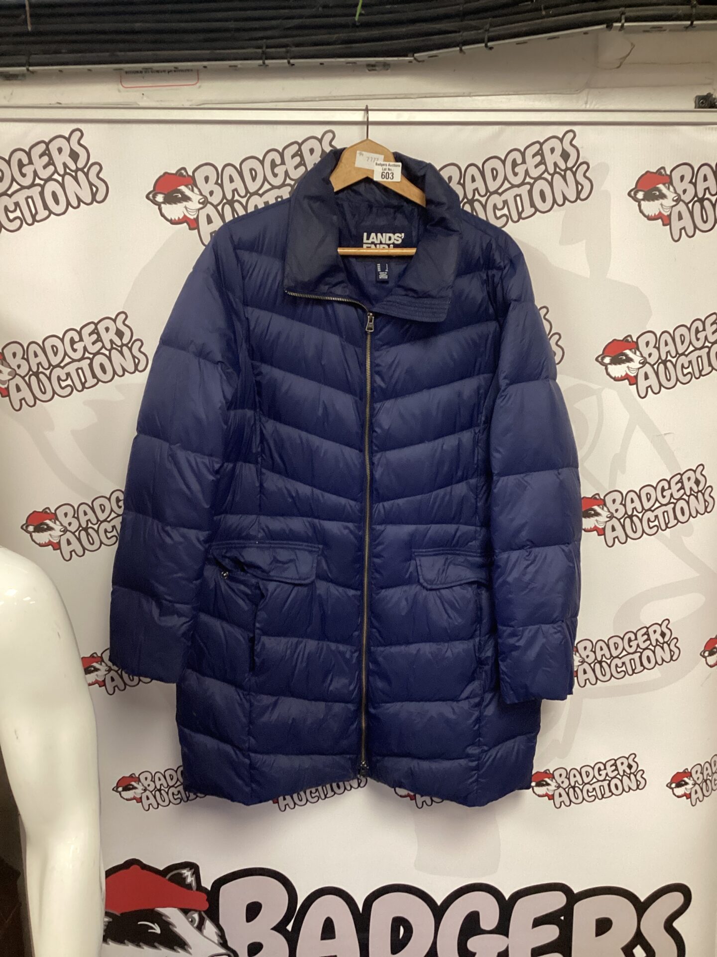 This is a classic Land’s End puffer coat, designed for warmth and comfort during colder months. The coat features a quilted design, providing excellent insulation, and is constructed from durable materials to withstand wear and tear. It’s a versatile piece of outerwear suitable for various outdoor activities or everyday wear.