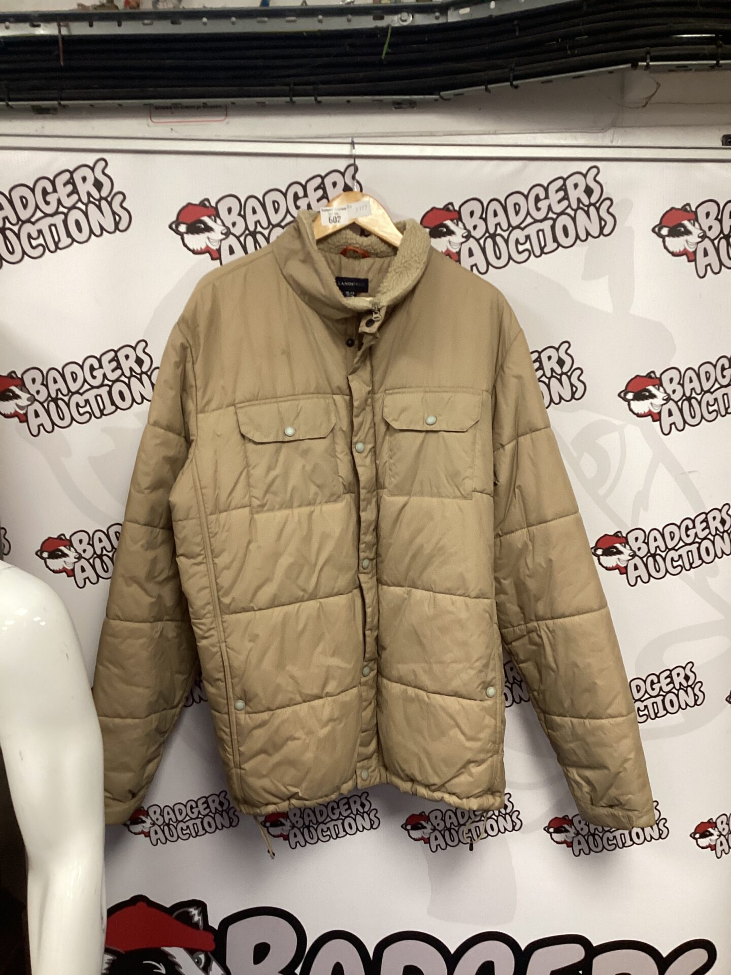 This is a classic Land’s End puffer jacket, designed for warmth and comfort during colder months. The jacket features a quilted design, providing excellent insulation, and a practical, versatile style. It’s a durable and reliable piece of outerwear, perfect for everyday wear or outdoor activities.