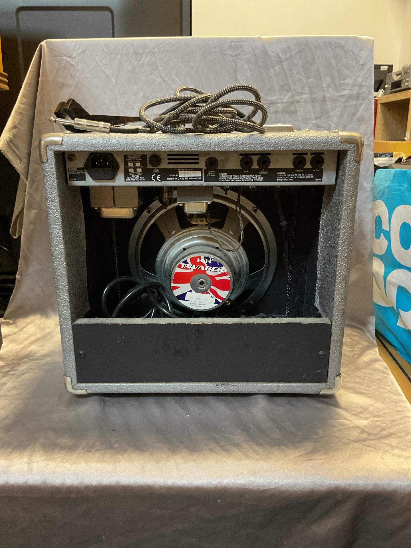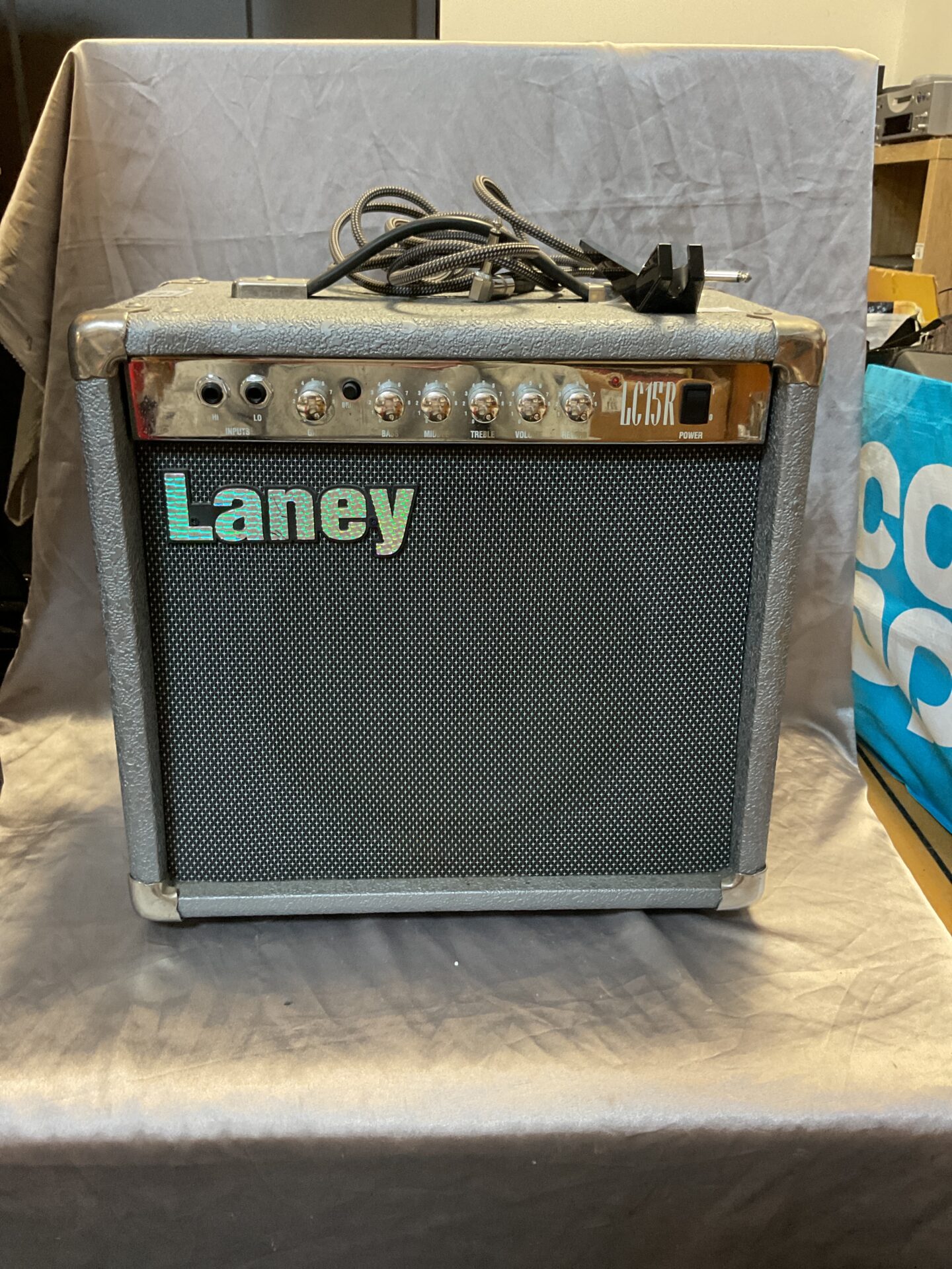 This Laney LC15R guitar amplifier is a vintage British amp known for its warm tone and simple controls. Ideal for practice, recording, or small gigs, this 15-watt amplifier offers a classic sound. A potentially collectible piece, it’s offered as seen and requires assessment before purchase.