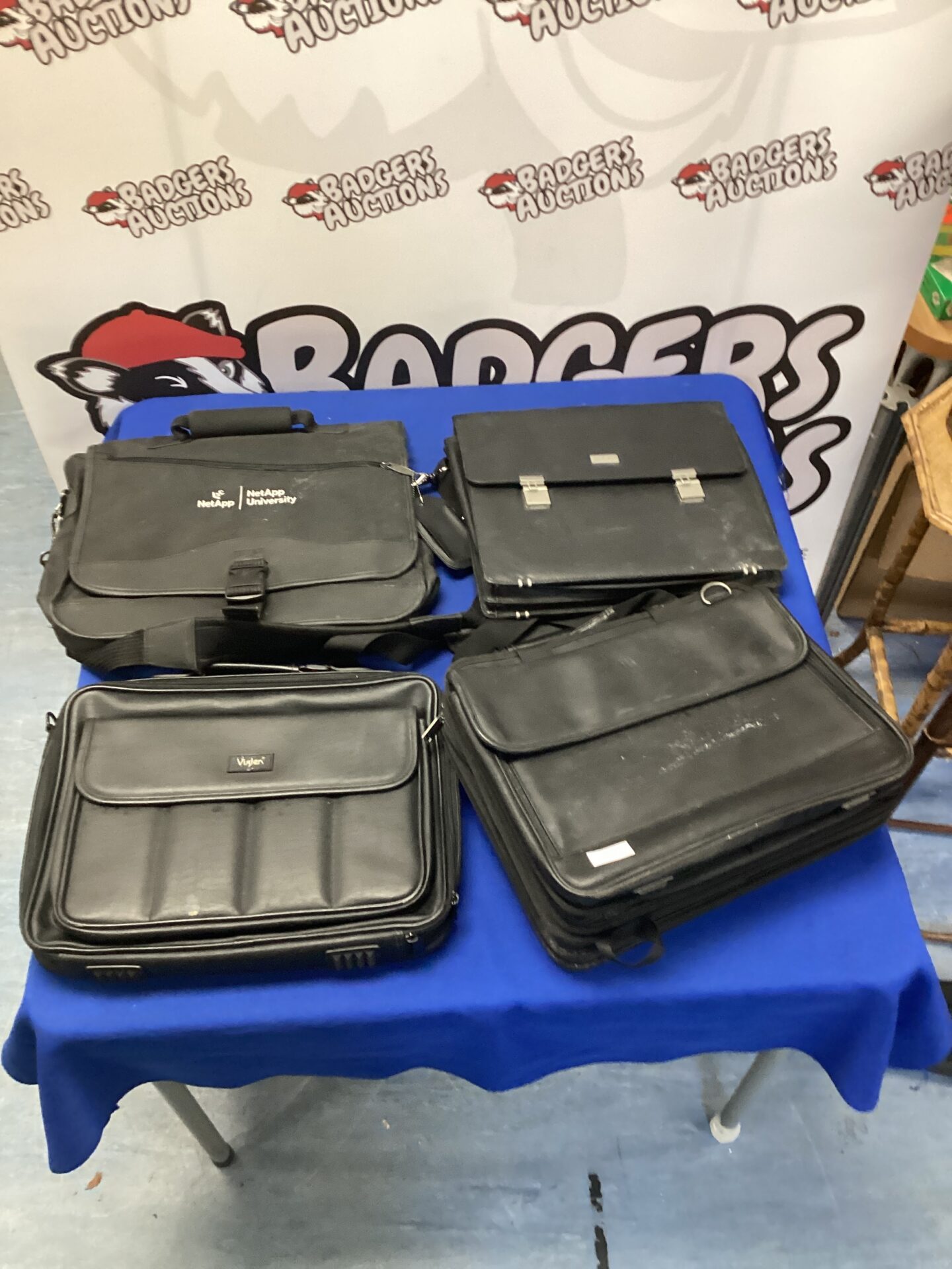This lot comprises four black laptop bags, including examples from Viglen and NetApp. These bags are designed to protect and transport laptops and related accessories, featuring a standard carrying case style with handles and potentially shoulder straps (not fully visible in the image). The bags appear to be constructed from durable materials, suitable for everyday use or travel.
