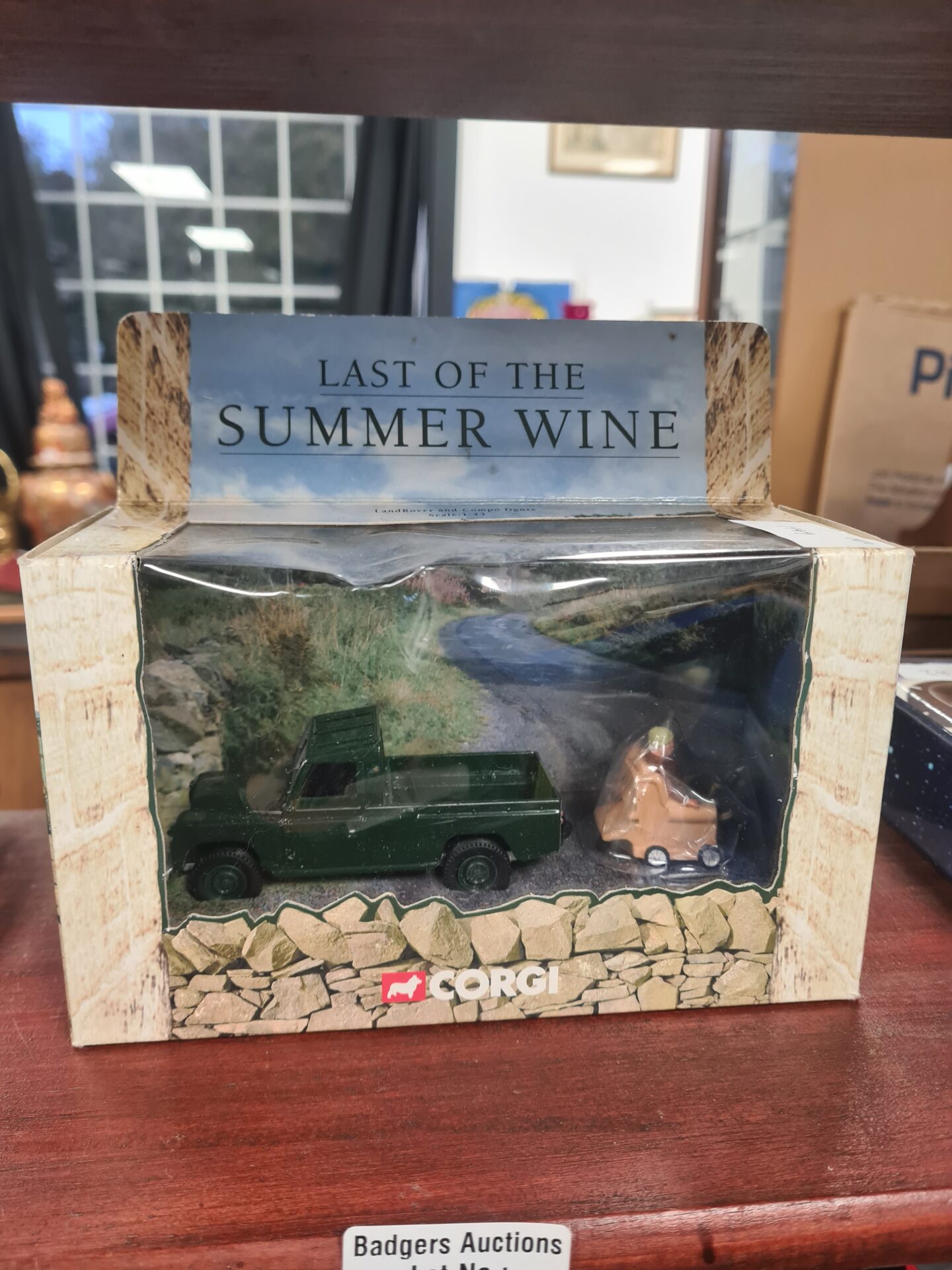 This is a boxed Corgi diecast model, faithfully recreating the iconic vehicle from the beloved British television series, *Last of the Summer Wine*. This model captures the charm and nostalgia of the show, appealing to fans and collectors alike. The attention to detail in this diecast replica brings a piece of television history to life, making it a delightful addition to any collection.