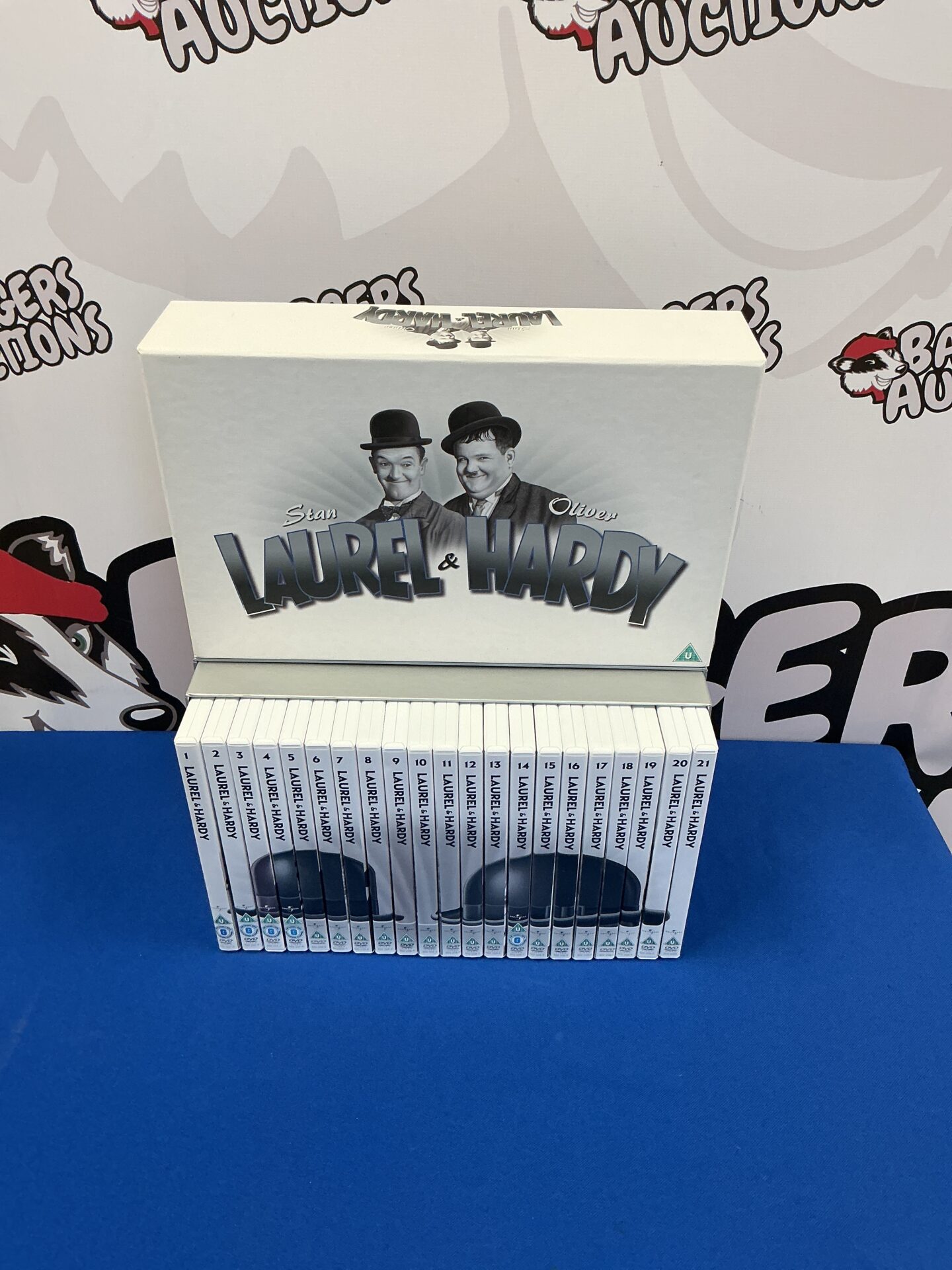 This collection appears to be a vintage item, showing signs of age and wear consistent with its likely history. The CDs and cases may exhibit minor scratches, scuffs, or other imperfections. This collection would be of interest to fans of Laurel and Hardy, collectors of vintage music, or those seeking a nostalgic piece of comedy history.