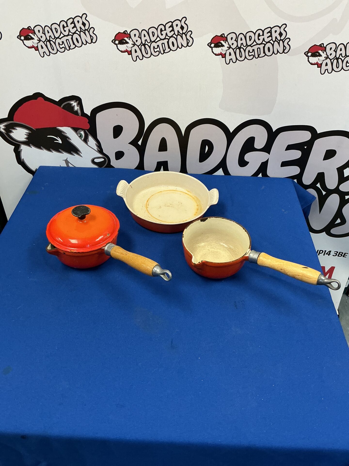 This Le Creuset casserole dish shows signs of use, with some minor wear and tear consistent with age and use. Despite this, it remains a functional and attractive piece of kitchenware. Le Creuset items are highly sought after by collectors and home cooks alike, and this dish would be a welcome addition to any kitchen or collection.