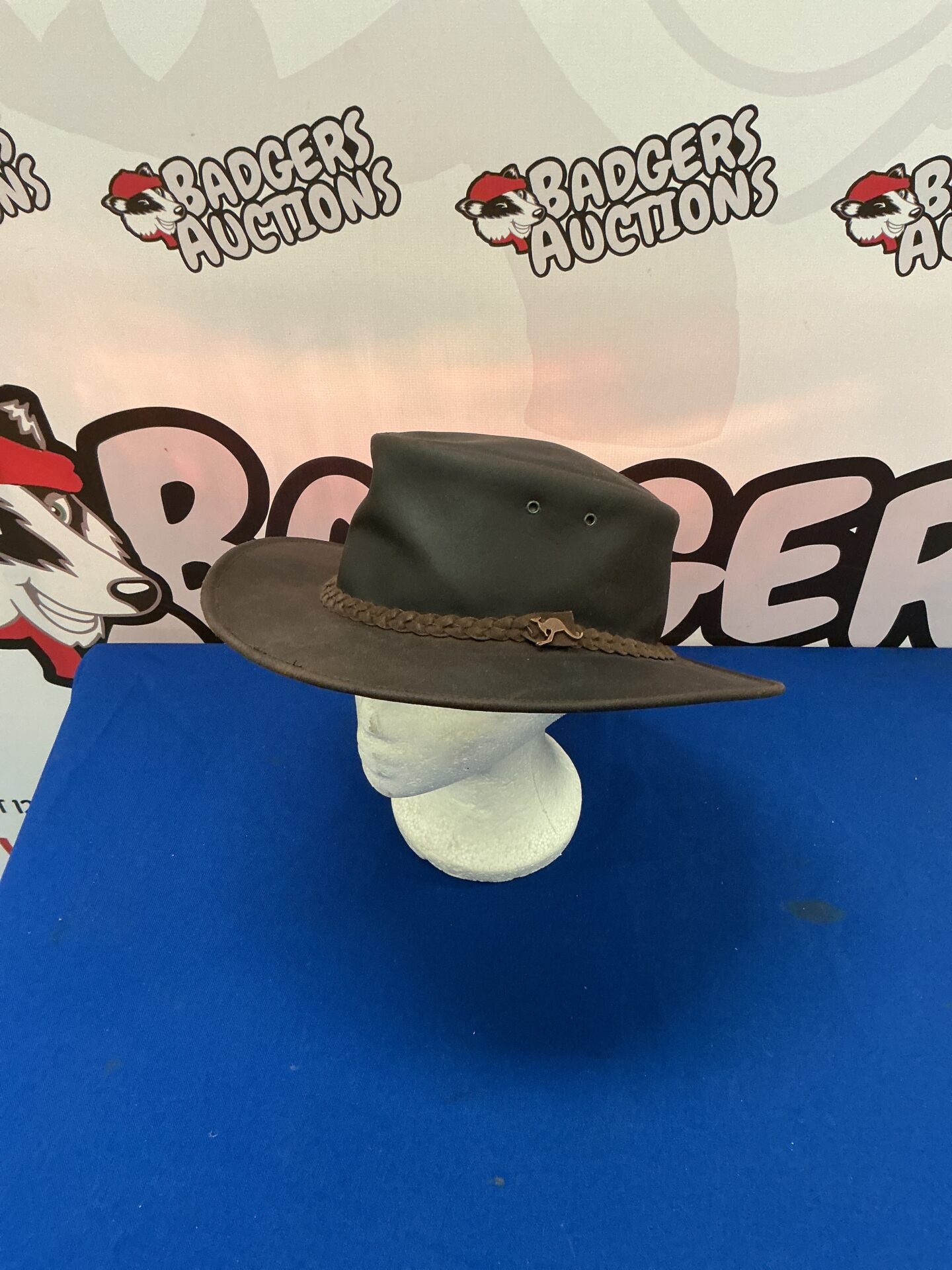 This hat shows signs of wear consistent with age and use, adding to its character. While not pristine, the hat remains structurally sound and presents a desirable vintage appearance. This hat would appeal to collectors of western wear, enthusiasts of ranching history, or individuals seeking a unique and authentic piece of headwear.