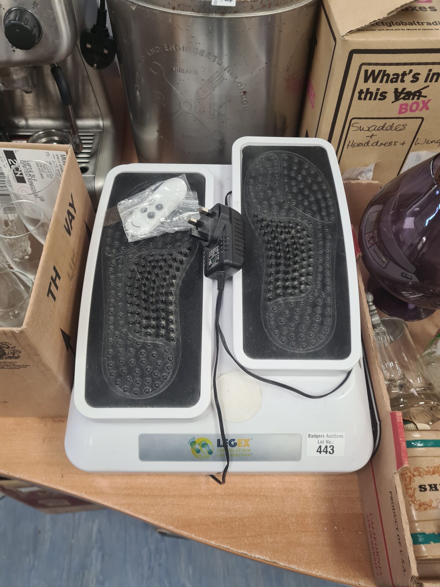 This Legex circulation leg exerciser is designed to stimulate blood flow and muscle activity in the legs and feet. Featuring adjustable settings, this compact device offers a convenient way to promote circulation and recovery at home. A potentially interesting item for collectors or those seeking a specific model.