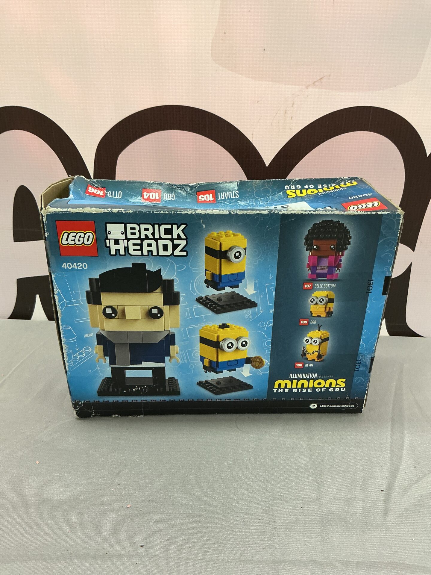 This Lego Minions set appears to be in excellent condition, with all pieces present and accounted for. The box shows some wear, which is typical for a collectible item. This set is a must-have for Lego enthusiasts, Minions fans, and collectors of BrickHeadz figures, offering a unique and charming display piece.
