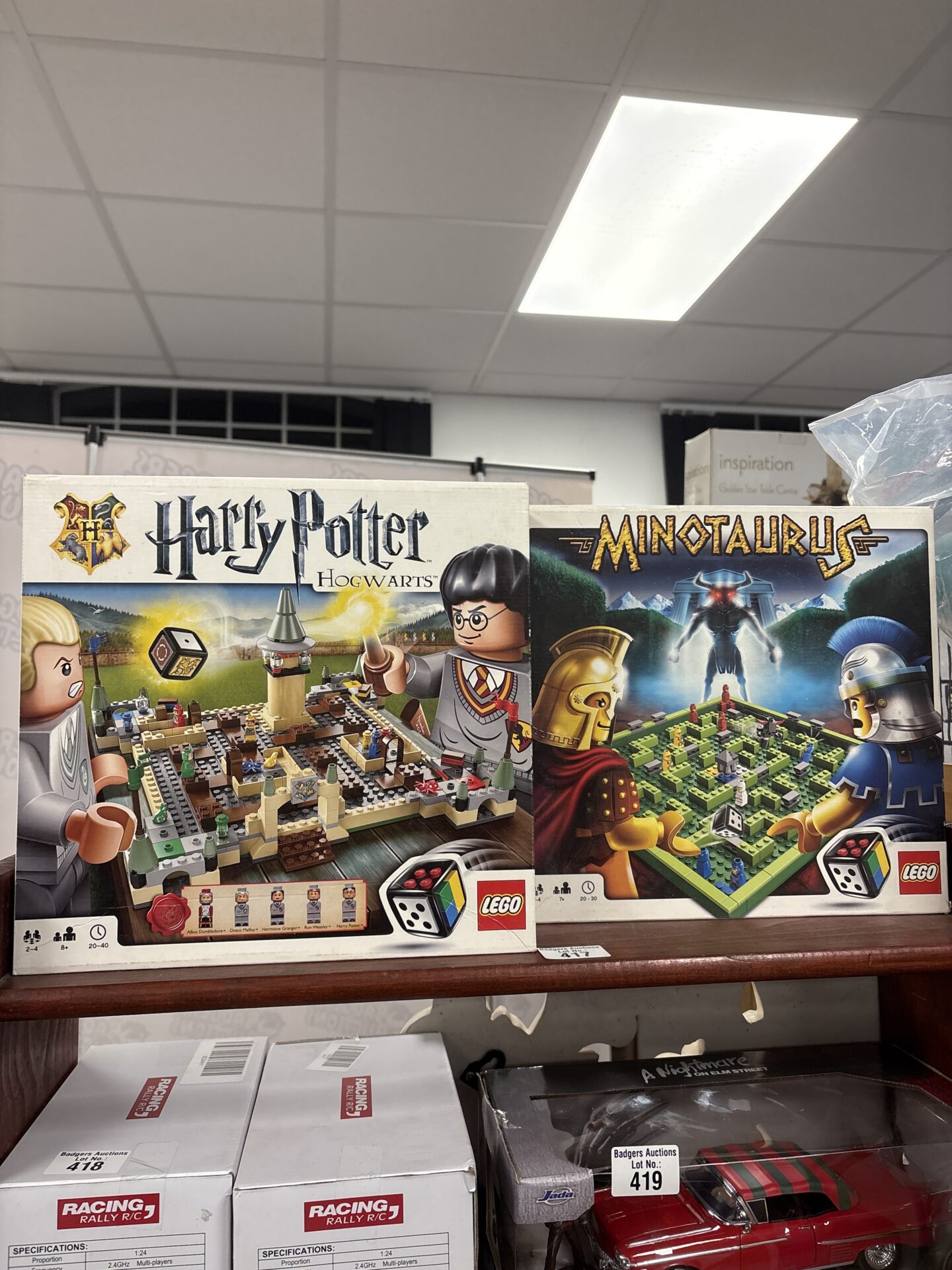 This lot features two Lego playsets: a Harry Potter set depicting Hogwarts and a Minotaurus themed set. Both sets appear to be designed for building and imaginative play, offering a creative outlet for Lego enthusiasts. The Harry Potter set showcases iconic elements from the wizarding world, while the Minotaurus set brings a touch of mythology to the Lego universe.