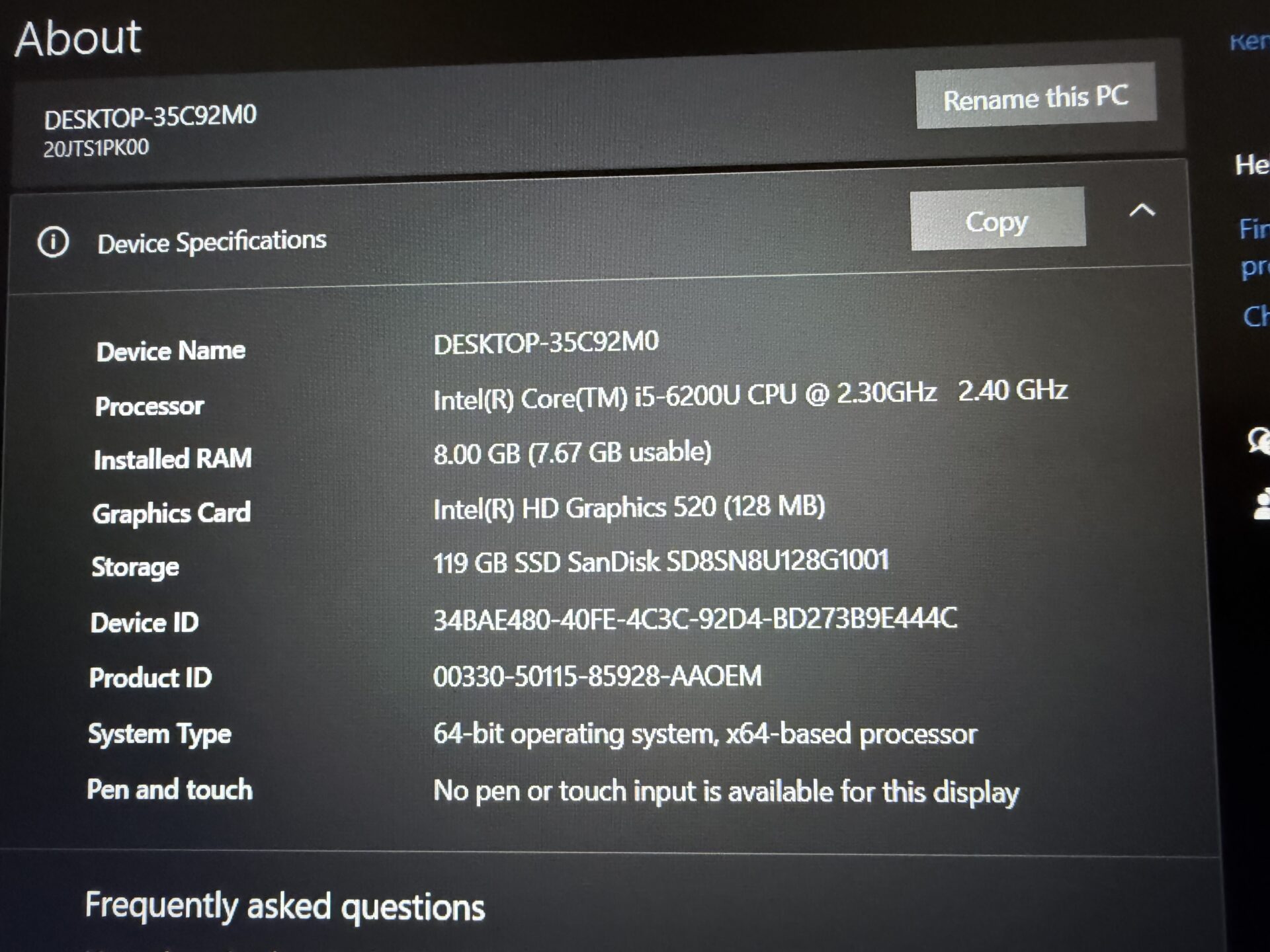 Storage: 119 GB SSD (SanDisk SD8SN8U128G1001)