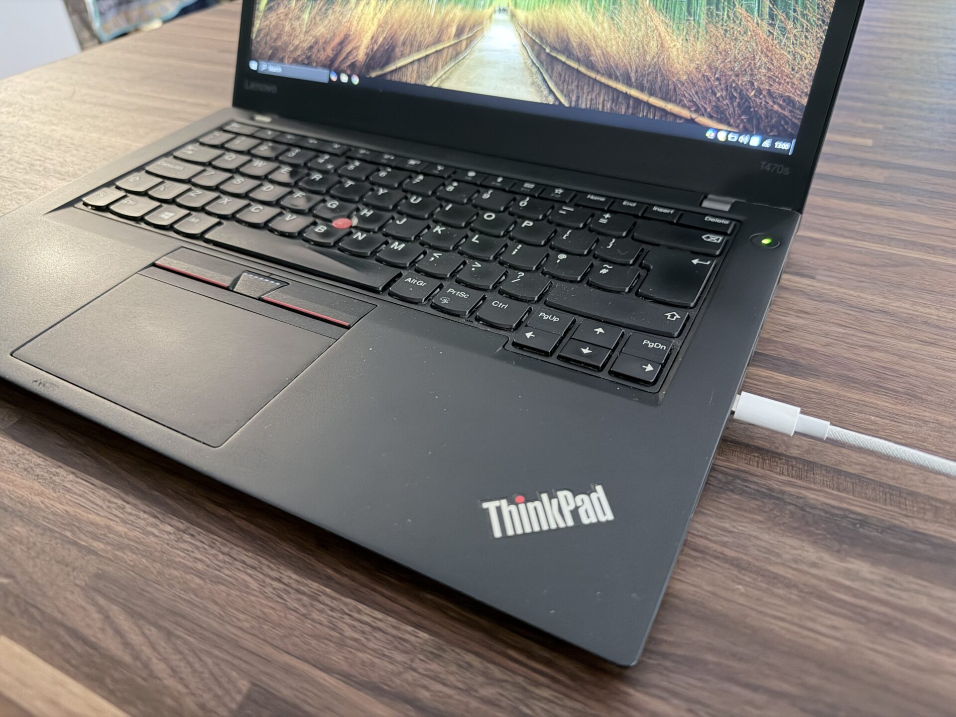 This Lenovo ThinkPad T470s is a reliable business-grade laptop known for its durability and solid performance. It powers on and runs perfectly via a USB-C charger. The battery condition is unknown (it does not seem to hold charge), but everything else functions exactly as expected.