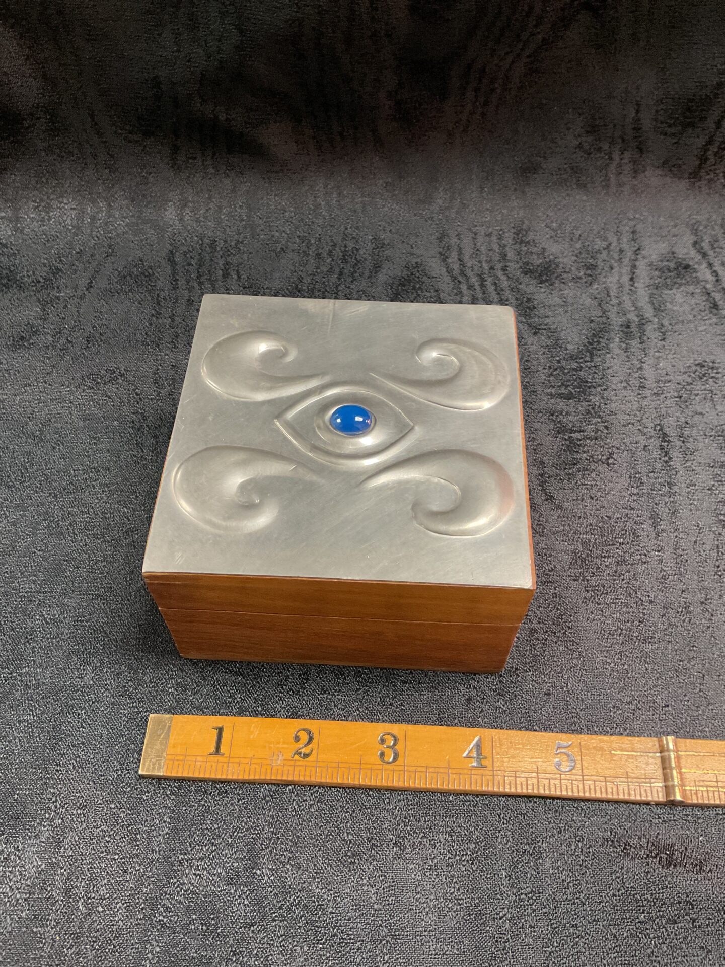 928 Sasha Bowles Designs For Liberty Pewter And Turquoise Colour Stone Lid Trinket Box