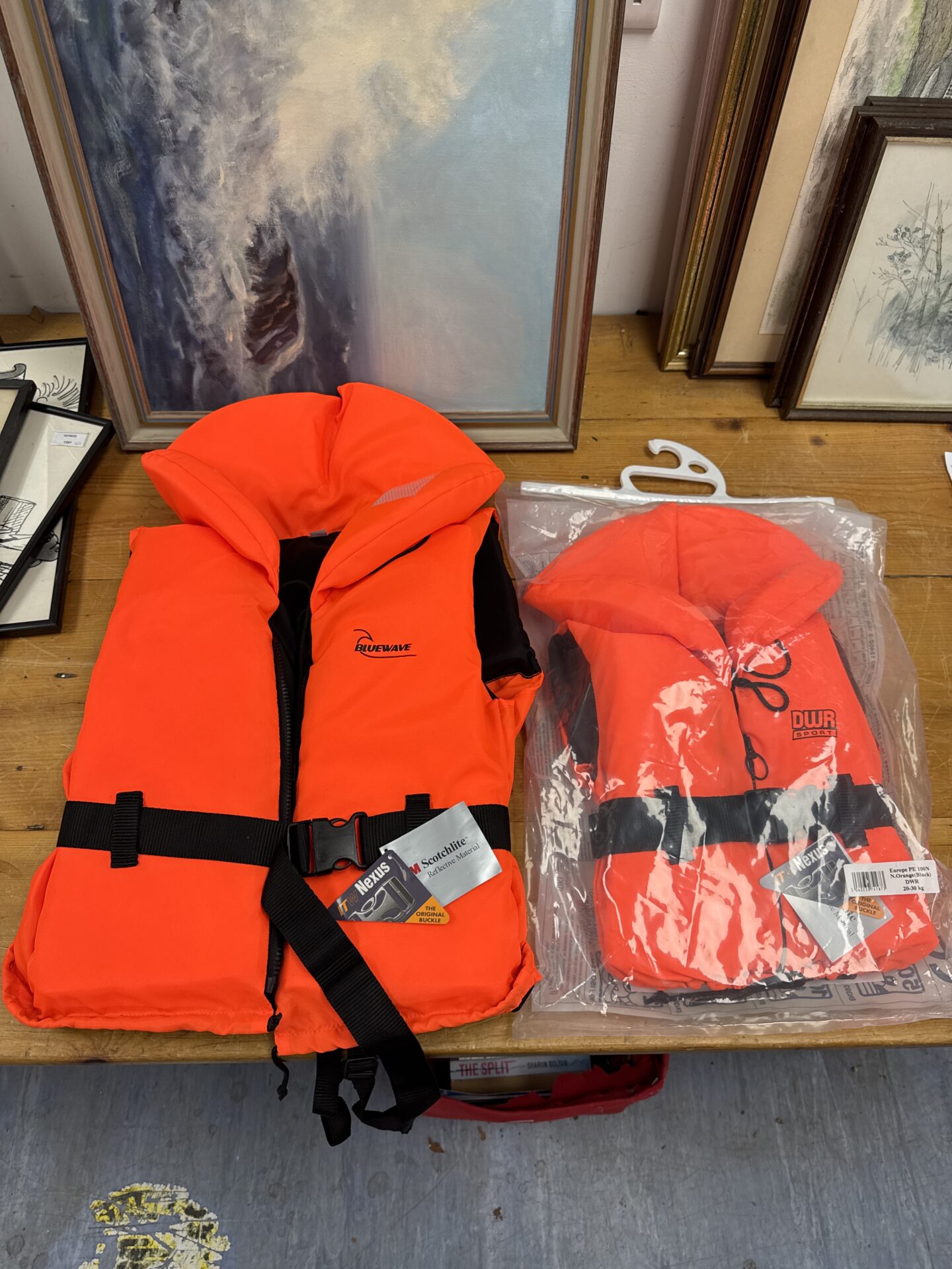 This is a Bluewave and DWR Sport life jacket, designed for children or ladies. It’s a bright orange buoyancy aid, featuring adjustable straps for a secure and comfortable fit. The jacket is designed to provide essential flotation in water activities, ensuring safety and peace of mind.