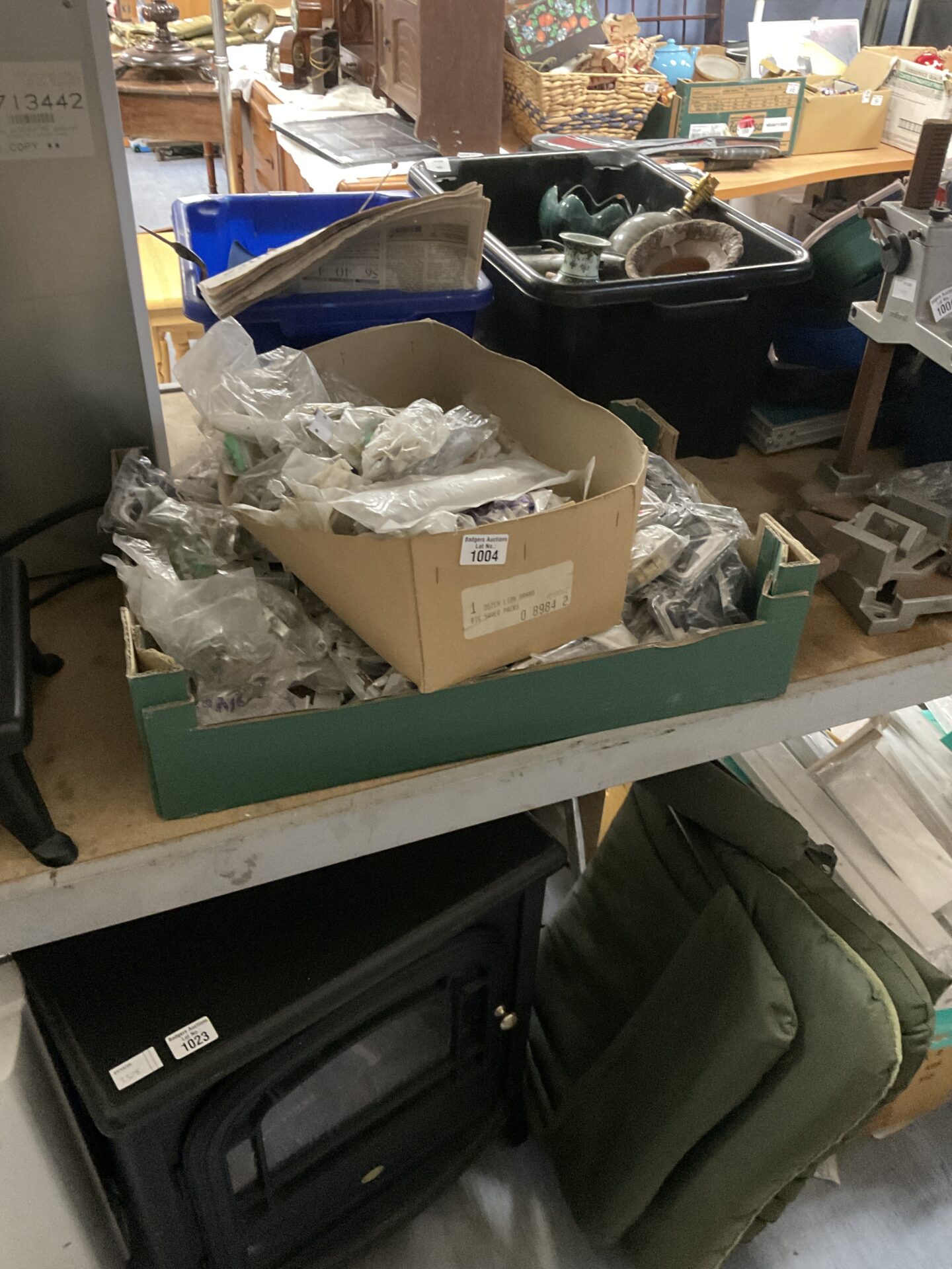 The condition of the items appears varied, with some showing signs of wear and use, while others appear newer. This lot may be of interest to collectors of vintage electrical fittings or door hardware, as well as those undertaking home renovation or restoration projects. The assortment provides a diverse selection for those seeking unique or hard-to-find components.