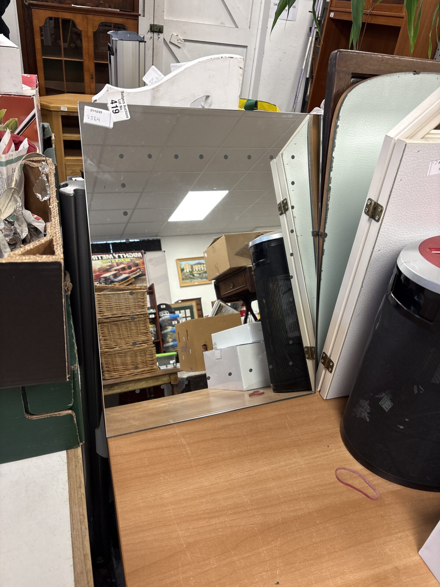 This modern light-up bathroom mirror is perfect for adding a touch of style and functionality to any bathroom. Featuring integrated lighting around the perimeter, it provides excellent illumination for grooming and skincare. This wall-mounted mirror shows signs of previous use and is offered in its current condition.