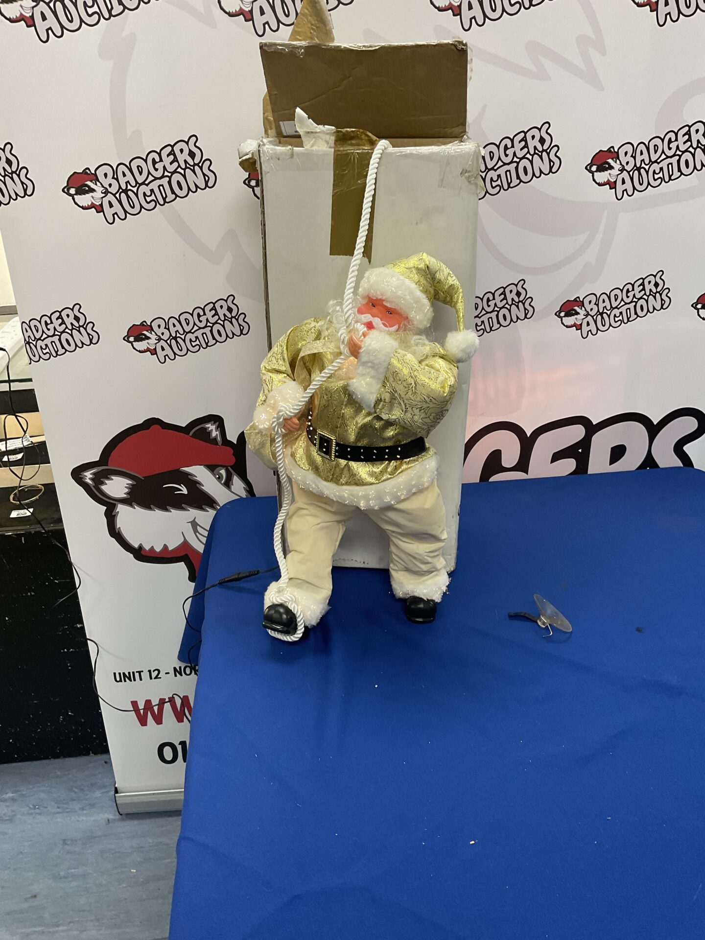 This is a charming light-up Santa Claus figurine, designed to bring festive cheer to any home during the holiday season. The figurine features a detailed depiction of Santa Claus, crafted with attention to detail and finished in a golden hue. It is designed to illuminate, creating a warm and inviting glow, and is intended as a decorative piece for mantels, shelves, or tabletops.