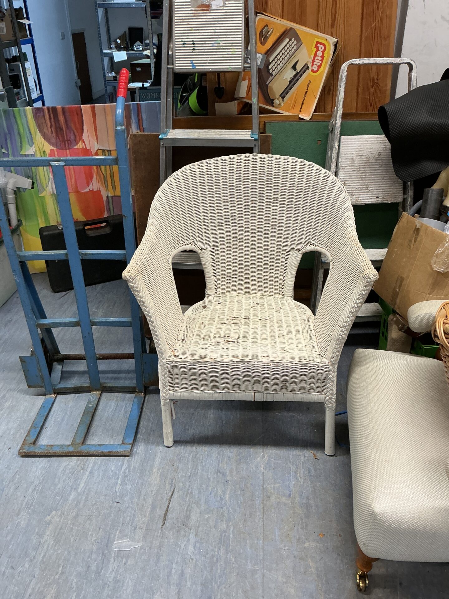 This is a vintage Lloyd Loom chair, a classic example of British craftsmanship. Lloyd Loom chairs are known for their distinctive woven paper fibre construction, creating a lightweight yet durable seating option. This chair features a traditional style, likely dating from the mid 20th century, and would have been a popular choice for sunrooms, conservatories, or as an extra seat in a living room.