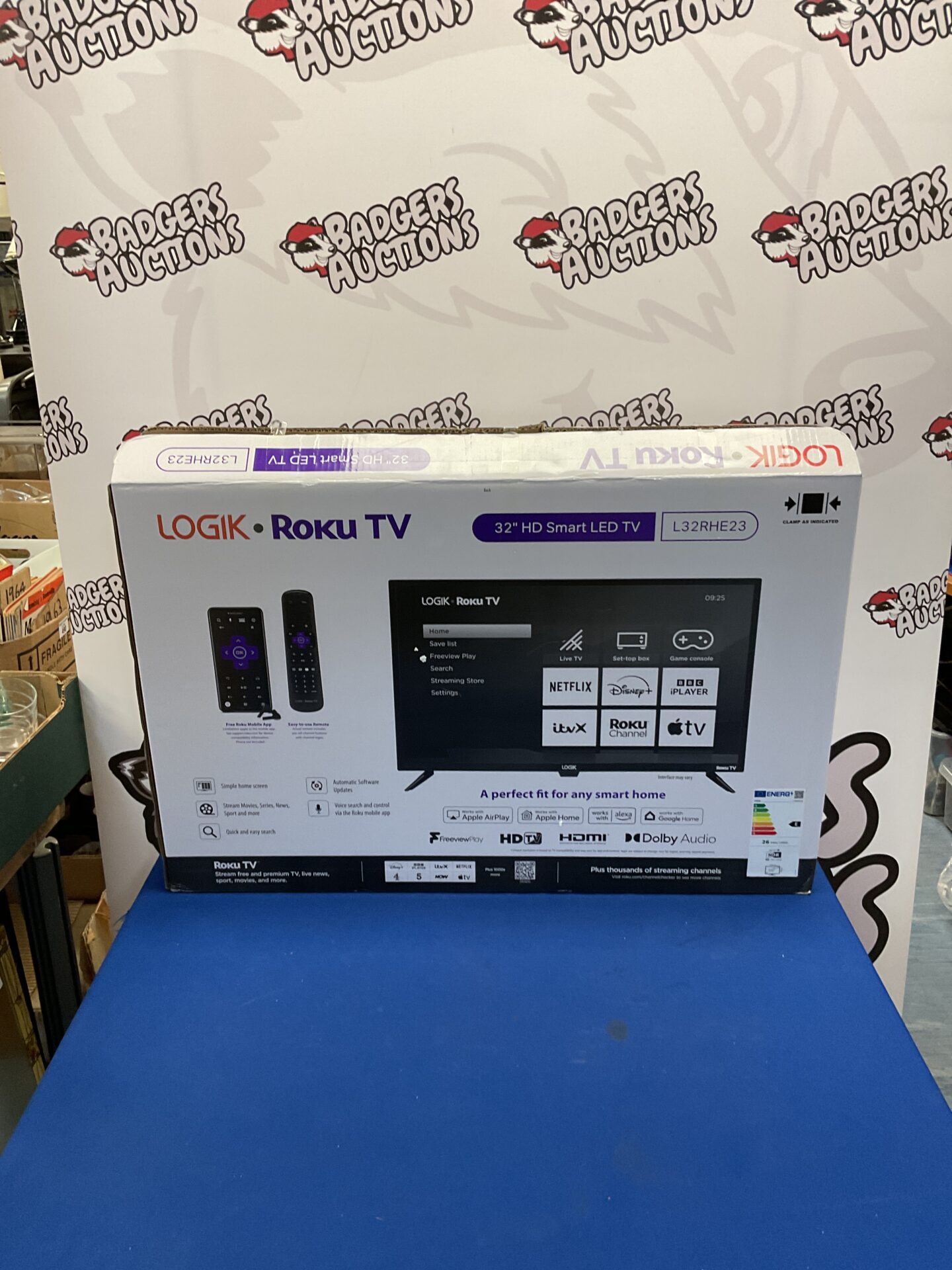 This Logik Roku 32” Smart LED TV, model L32RHE23, offers a convenient way to enjoy streaming services. Its compact size makes it ideal for smaller rooms. Presented for auction in as-seen condition, it may appeal to collectors or those seeking a restoration project.