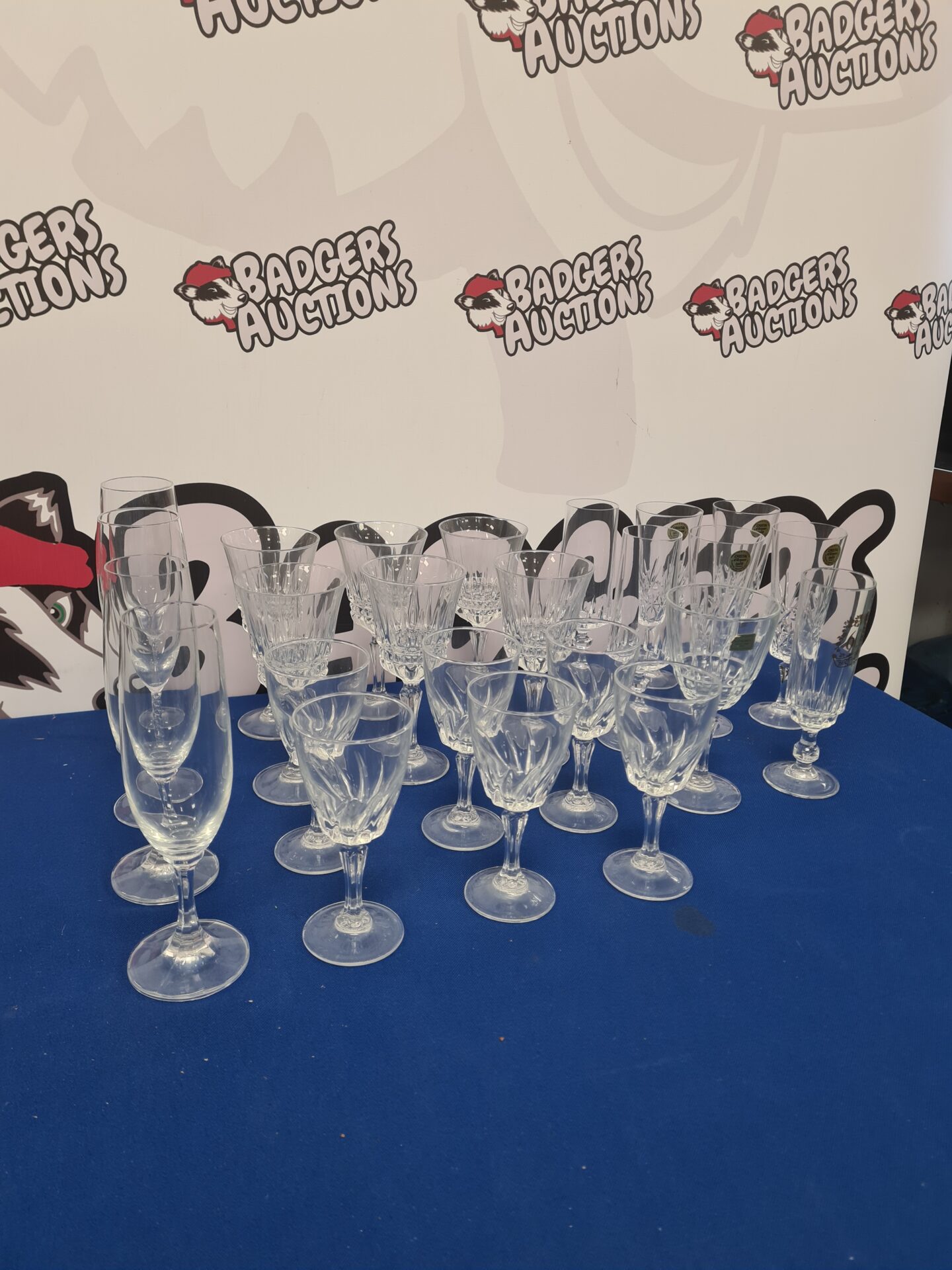 This lot comprises a collection of Luminarc mixer glassware, designed for creating and serving cocktails and other beverages. The glasses exhibit a classic mid-century modern aesthetic, with a distinctive shape and a subtle coloured tint. Luminarc is renowned for its durable and stylish glassware, making this set both functional and visually appealing for home bars or entertaining.
