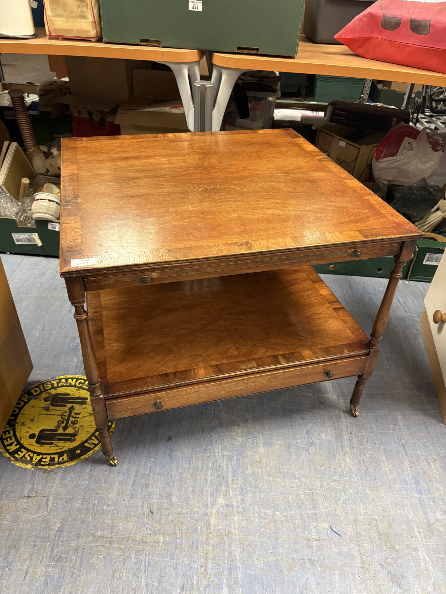 407 Vintage Mahogany Wheeled Square Coffee Table