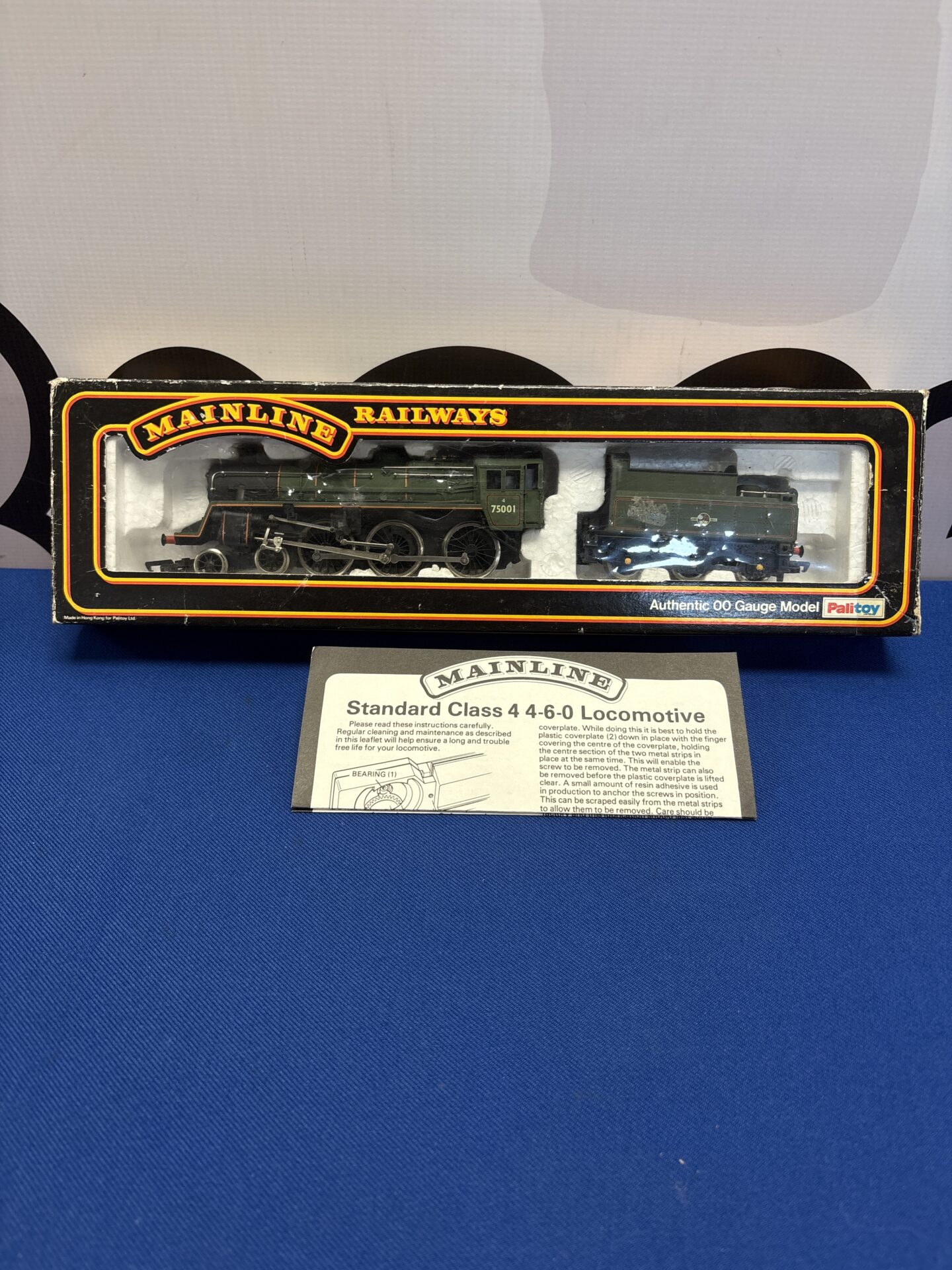 This is a boxed Palitoy Mainline Railways OO Gauge model train, bearing the number 7501. This model represents a classic British railway locomotive, meticulously crafted in a style typical of the Mainline Railways range. The model showcases detailed moulding and paintwork, intended to replicate the appearance of a real locomotive from the era.
