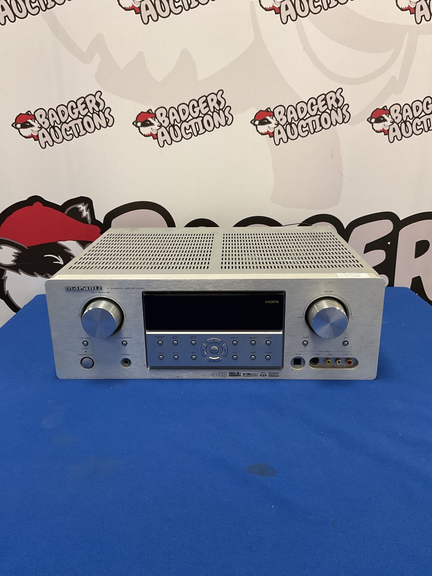 This is a Marantz SR4001 AV receiver, designed for home theater and audio enthusiasts. It features a sleek black finish and a comprehensive array of inputs and outputs for connecting various audio and video devices. The receiver is intended to deliver immersive surround sound experiences, enhancing both movie viewing and music listening.