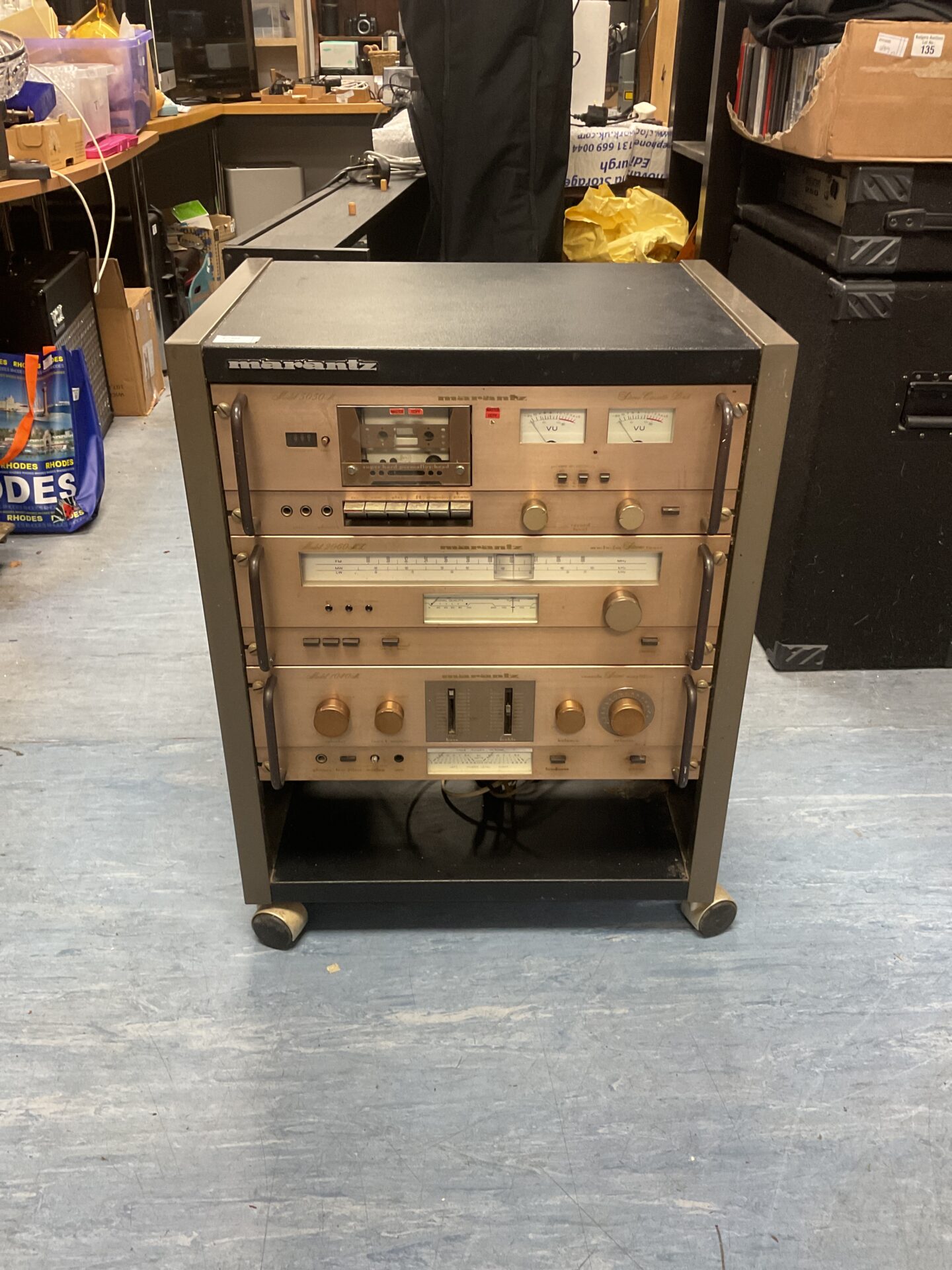 This Marantz hifi system is presented for consideration by collectors and enthusiasts. The components exhibit signs consistent with age and previous use. Prospective buyers are encouraged to examine the images carefully to assess the condition and determine if it meets their requirements.