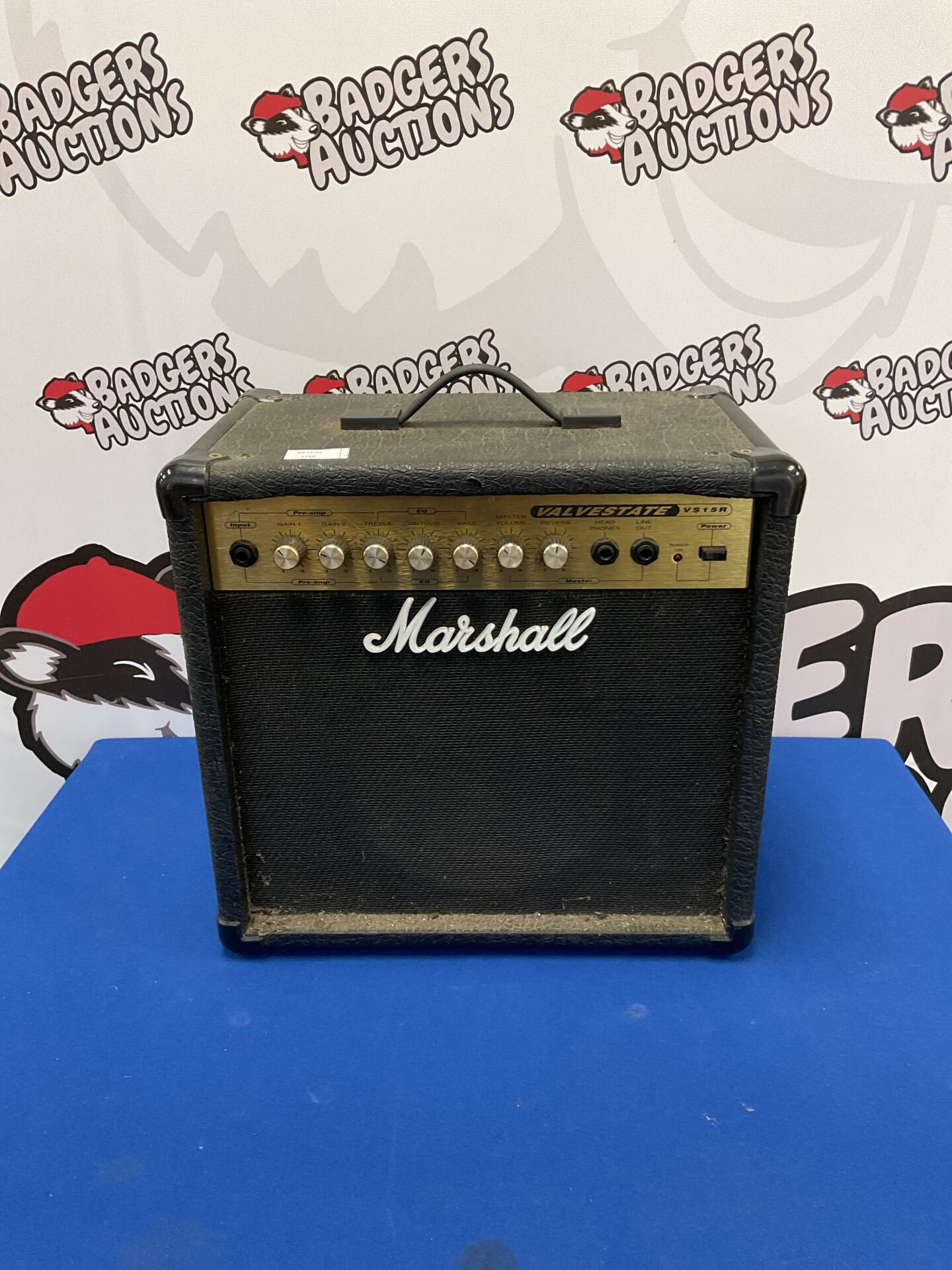 This is a Marshall ValveState VS15R amplifier, a notable offering from Marshall’s hybrid amplifier series. Combining valve (tube) preamp sections with solid-state power stages, the VS15R delivers a distinctive tone favoured by many guitarists. It features a range of controls for shaping the sound, including gain, master volume, and a three-band EQ, allowing for versatile tonal options.