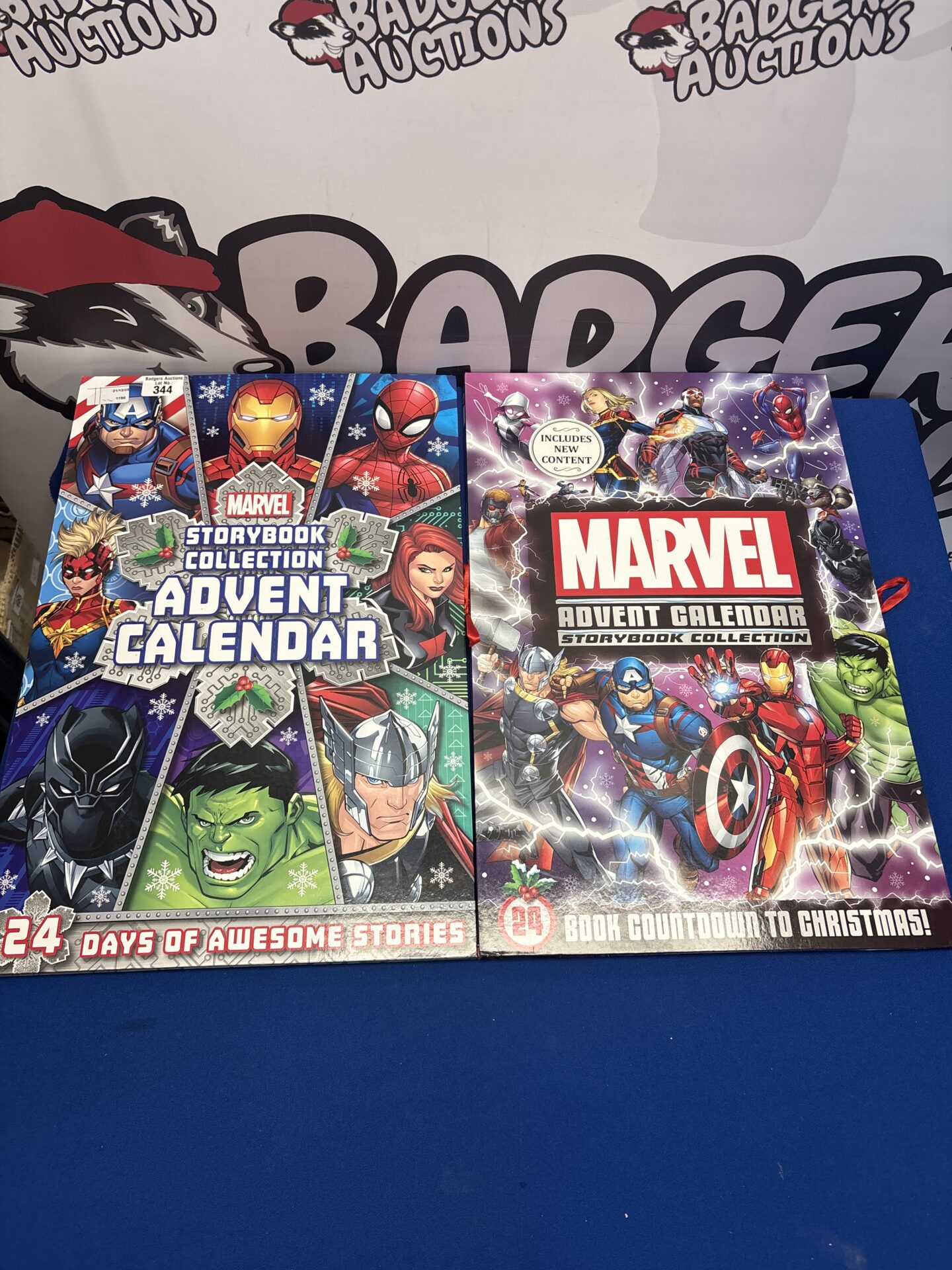 This lot features two Marvel Avengers Advent Calendars, perfect for fans of the superhero franchise. Each calendar offers a festive countdown to Christmas with daily stories and characters. A charming collectible for enthusiasts and a delightful addition to any holiday season.