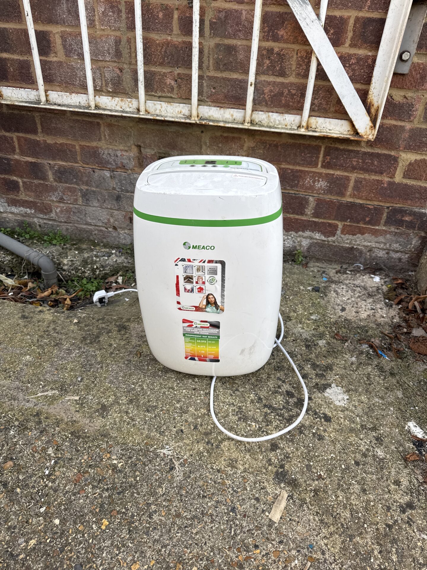 This is a Meaco dehumidifier, designed to reduce moisture levels in indoor spaces. It’s a portable unit, intended for use in homes, offices, or other areas where dampness is a concern. The unit appears to be a standard design for household use, offering a practical solution for controlling humidity and preventing mould growth.