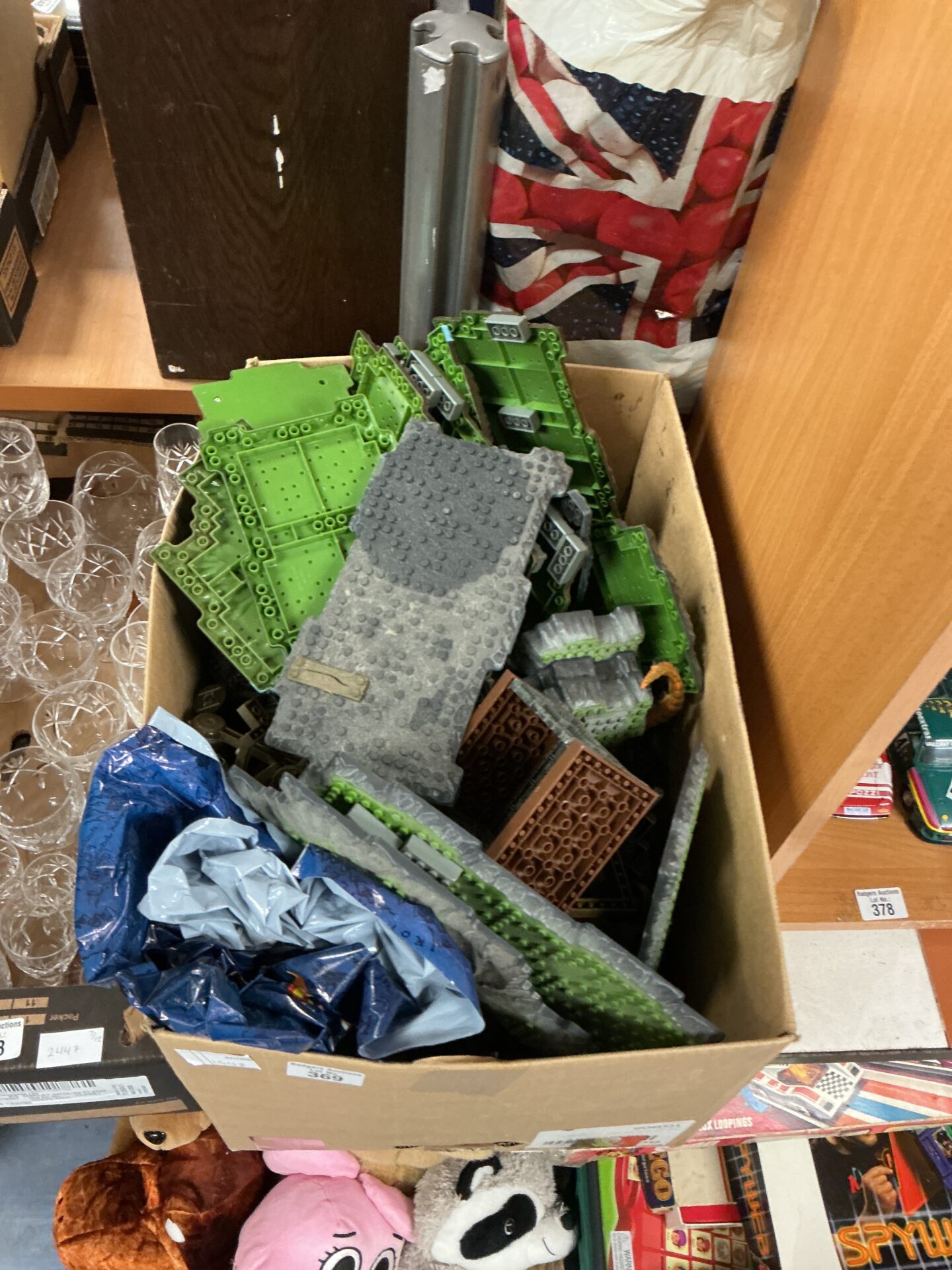 This lot comprises a collection of Mega Blox building blocks, designed for creative construction and imaginative play. The blocks are primarily green and grey, offering a versatile palette for building various structures. These blocks are compatible with other construction block systems, allowing for expanded building possibilities and collaborative play.
